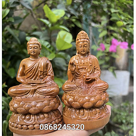 ✨Combo 2 tượng phật thích ca và phật bà quan âm bồ tát bằng gỗ bách xanh thơm nức kt 12×6×6cm