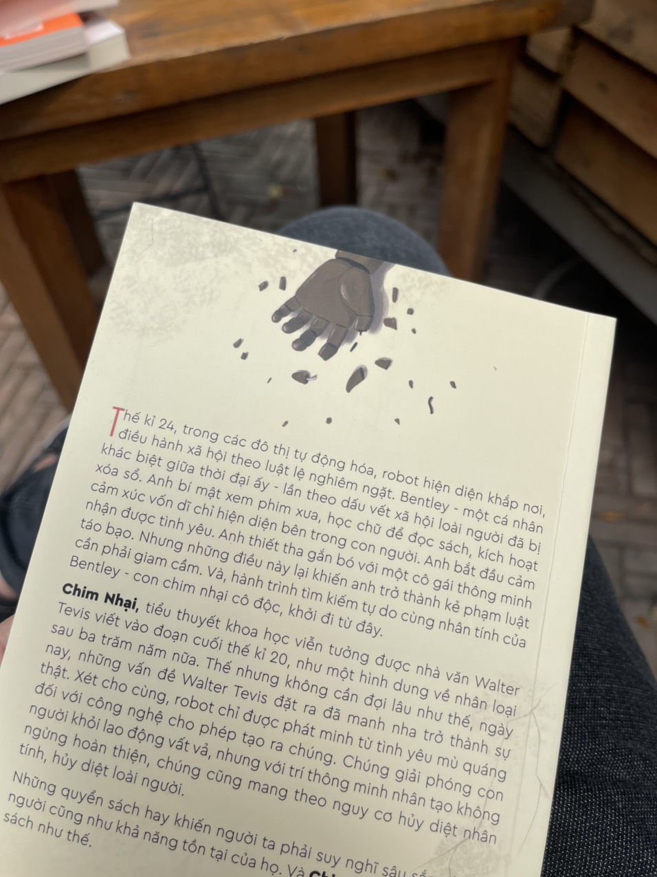 CHIM NHẠI Chim Nhại, tiểu thuyết khoa học viễn tưởng được nhà văn Walter Tevis viết vào đoạn cuối thế kỉ 20, như một hình dung về nhân loại sau ba trăm năm nữa. Thế nhưng không cần đợi lâu như thế, ngày nay, những vấn đề Walter Tevis đặt ra đã manh nha trở thành sự thật. Xét cho cùng, robot chỉ được phát minh từ tình yêu mù quáng đối với công nghệ cho phép tạo ra chúng. Chúng giải phóng con người khỏi lao động vất vả, nhưng với trí thông minh nhân tạo không ngừng hoàn thiện, chúng cũng mang theo nguy cơ hủy diệt nhân tính, hủy diệt loài người. Những quyển sách hay khiến người ta phải suy nghĩ sâu sắc về con người cũng như khả năng tồn tại của họ. Và Chim nhại là một quyển sách như thế.