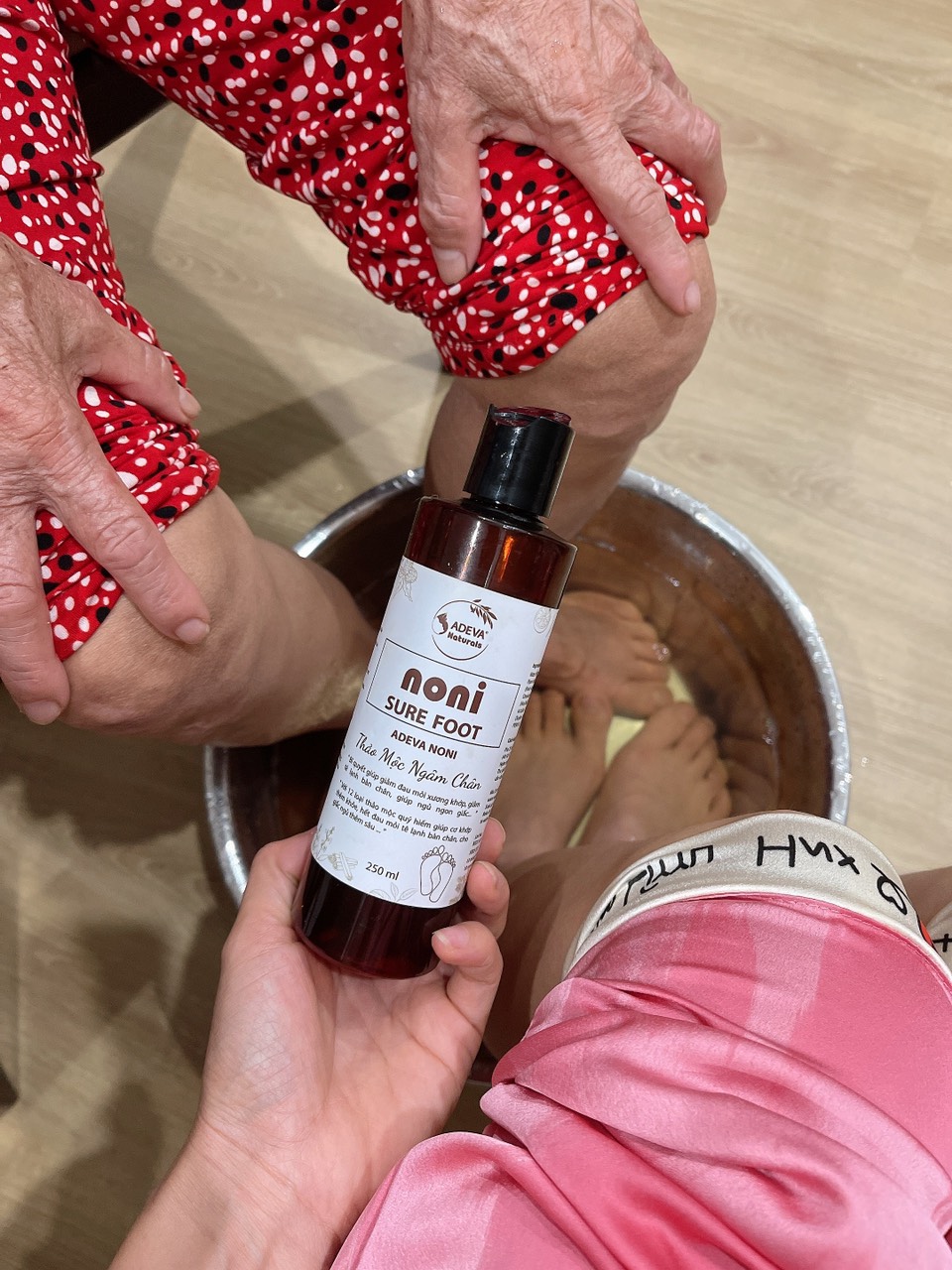 ✓ Ngâm ngập mắt cá chân, thư giãn từ 15-20 phút sau đó lau khô chân, không cần rửa lại