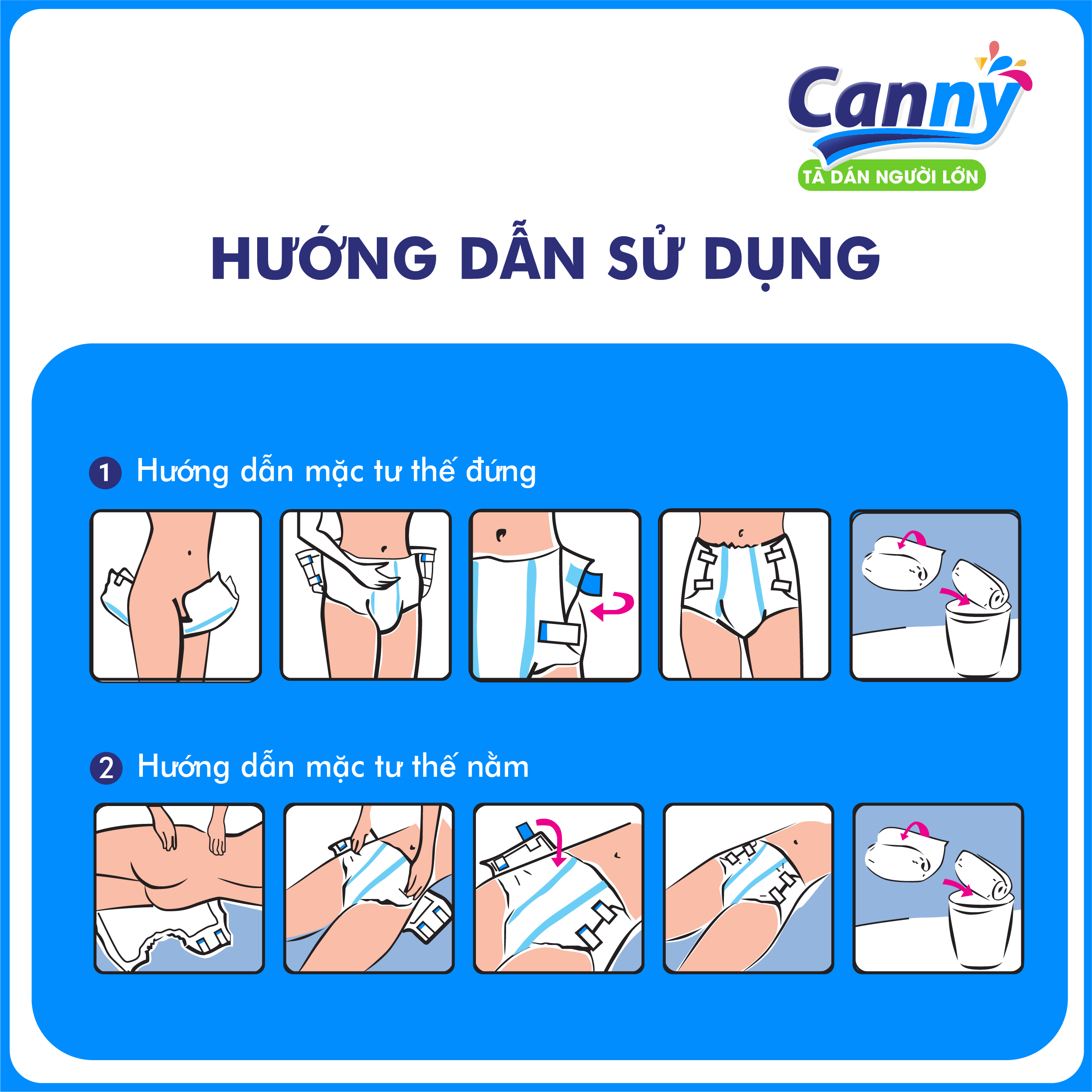 Sỉ 1 Cây/Thùng 2 Gói Tã dán Caryn M40 Siêu thấm hút- Tã dán người lớn Caryn- Hsd mới Hướng dẫn sử dụng - Mặc với sự trợ giúp của người nhà 1. Nghiêng người