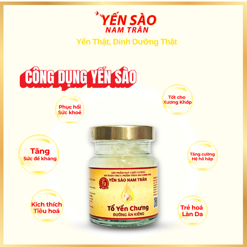 Tác dụng của tổ yến Đối với cơ thể, tổ yến có tác dụng toàn diện trên hệ thần kinh, hệ hô hấp, hệ tiêu hóa và rất nhiều cơ quan khác. Cứ trong 100g