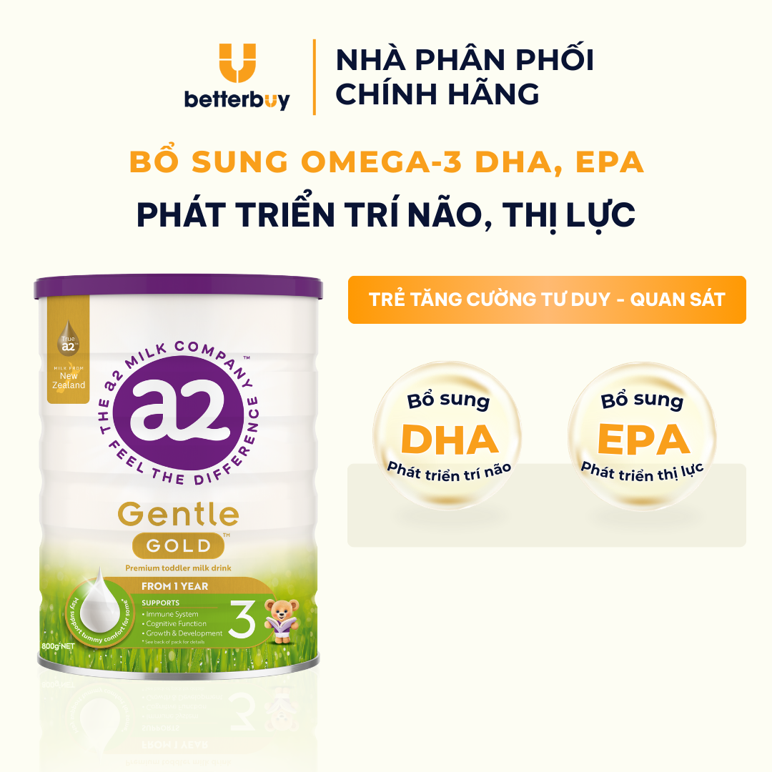 Sữa a2 Milk a2 Gentle Gold Số 3 Lon 800g Giới thiệu chung ĐẠI LÝ PHÂN PHỐI CHÍNH HÃNG A2 MILK - ĐẦY ĐỦ QR VÀ TEM PHỤ, CAM KẾT 1 ĐỔI 1 NẾU PHÁT