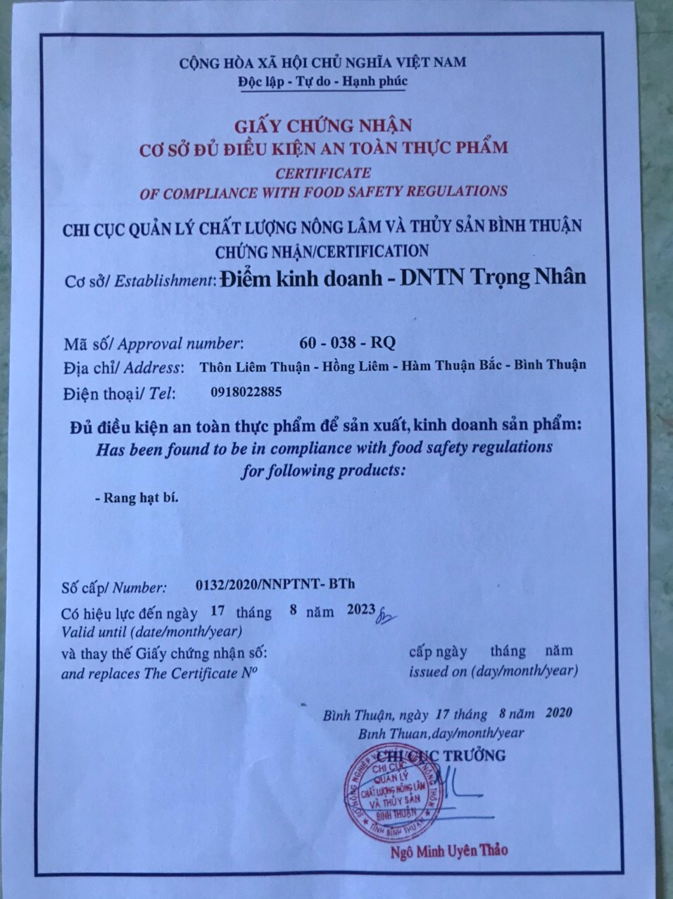 Hạt bí rang tay Trọng Nhân, Bình Thuận. Nhà làm nghề trên 20 năm (zalo 0908618509)