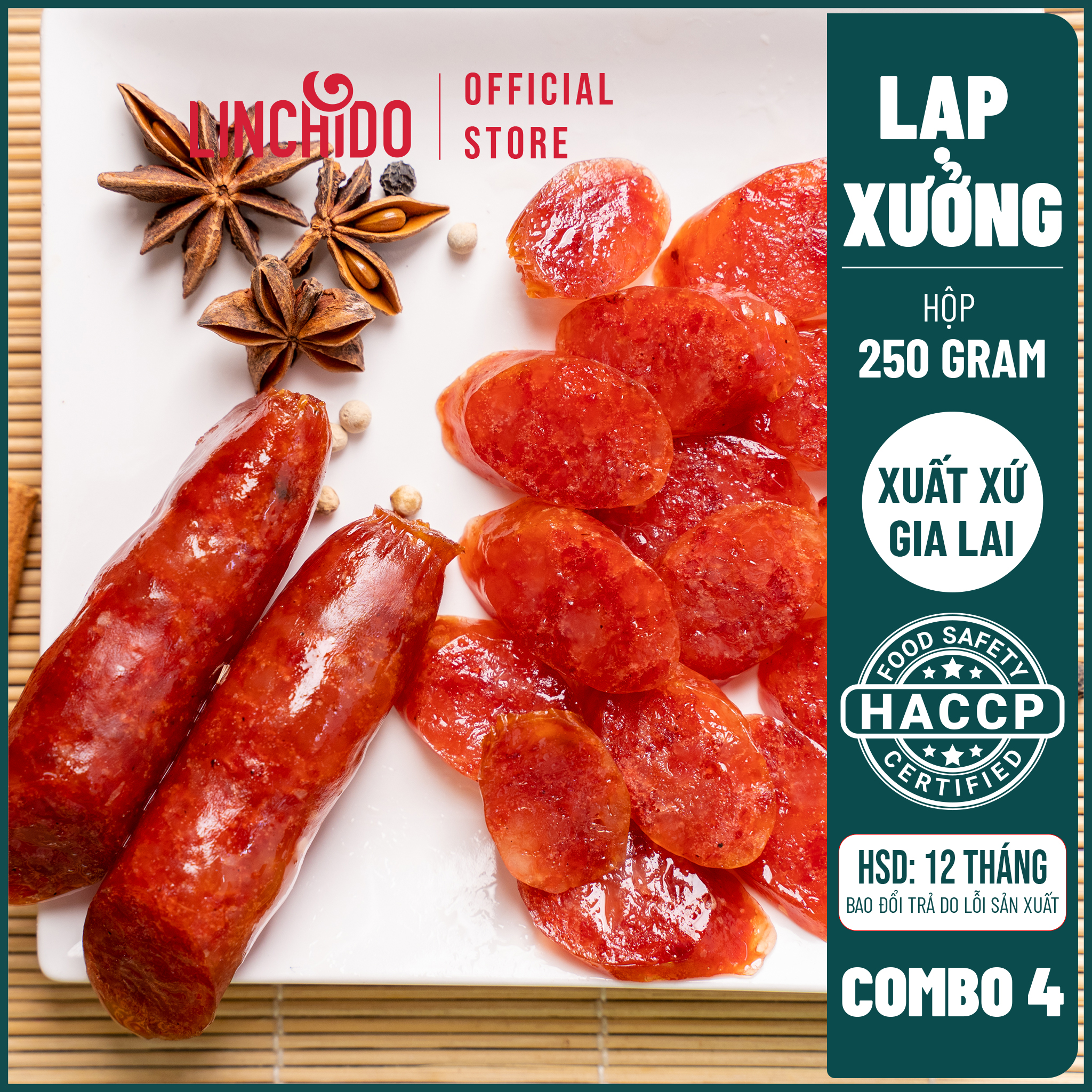 Xin giới thiệu món lạp xưởng đặc trưng, ngon miệng của chúng tôi sẽ đưa vị giác của bạn đến thiên đường ăn thịt! Được chế biến với sự cẩn trọng tối đa và sử dụng những miếng thịt hảo hạng, mỗi miếng lạp xưởng mọng nước là một sự bùng nổ hương vị. Với sự pha trộn hoàn hảo của các loại thảo mộc và gia vị, những liên kết ngon ngọt này sẽ khiến bạn thèm ăn hơn ngay từ lần nếm thử đầu tiên.