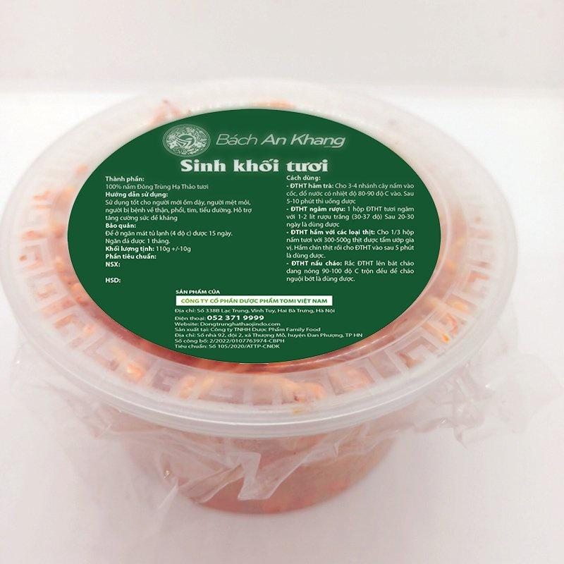 Combo 5 đế tươi đông trùng hạ thảo hữu cơ Bách An Khang cao cấp 180gram x 5 đế nuôi cấy Đà Lạt tốt cho sức khỏe Thành phần: 100% đông trùng hạ thảo sinh khối tươi cao cấp nuôi cấy tại Đà Lạt. Tác dụng: