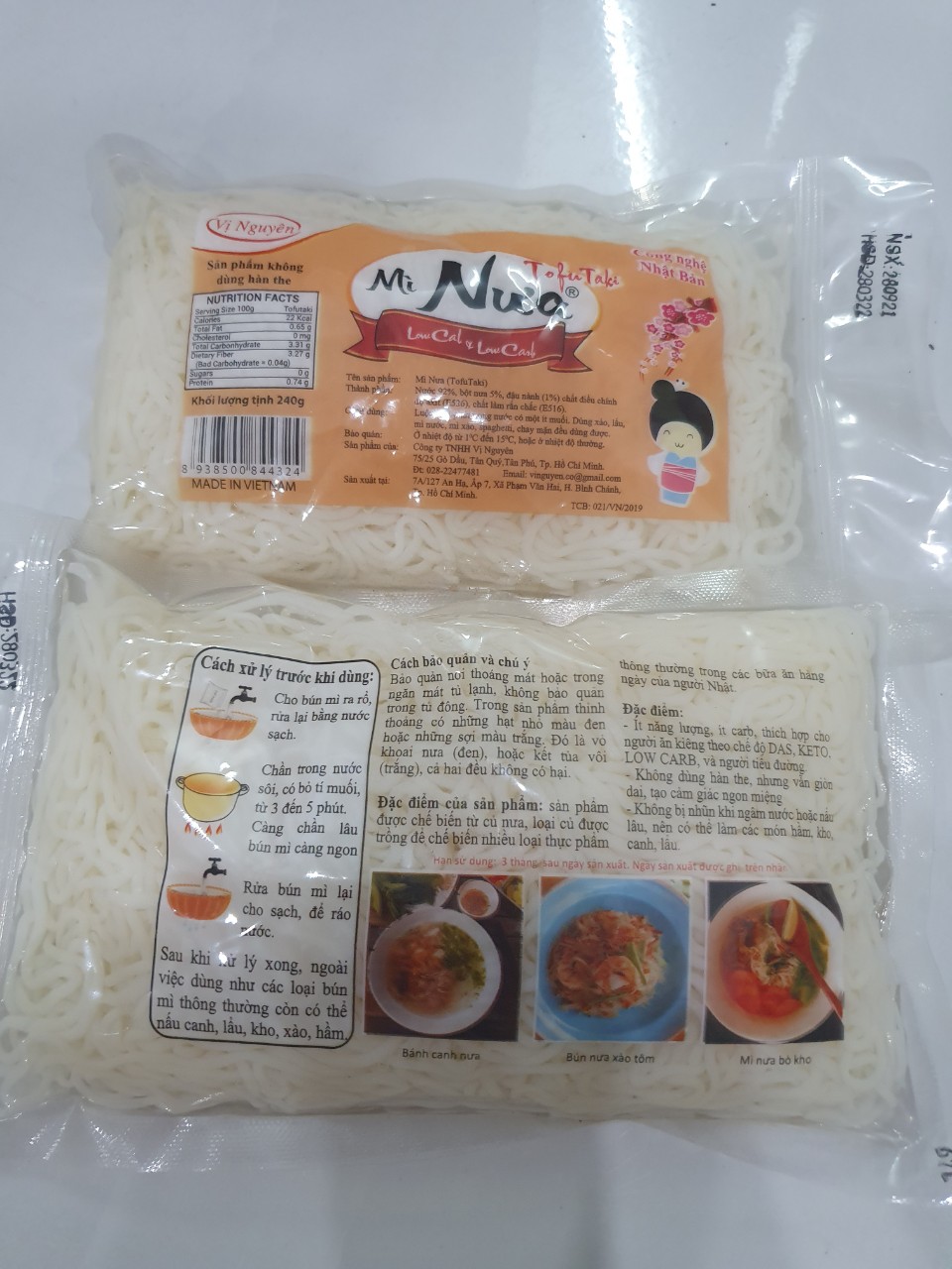 MIẾN NƯA VỊ NGUYÊN 240G - Xuất xứ: Việt Nam - Hạn sử dụng: 6 tháng (gói 240g) - Đóng gói: 240g/gói - Bảo quản: Nơi thoáng mát Những thực phẩm được làm từ bột Glucomanna