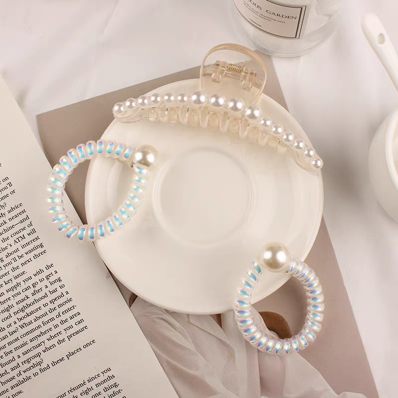Các nàng hãy thêm ngay set 5 món kẹp tóc và dây buộc đính ngọc trai này vào bộ saưu tập phụ kiện tóc trending ngay nhé