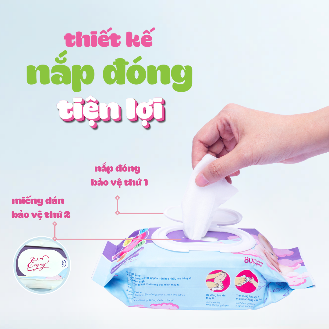 COMBO 10 Khăn ướt em bé ENJOY mềm mại, dưỡng ẩm, tiện dụng, đạt chuẩn sức khỏe SGS - Gói 20/50/80 tờ Khăn ướt Enjoy được sản xuất với thành phần hoạt chất thiên nhiên,