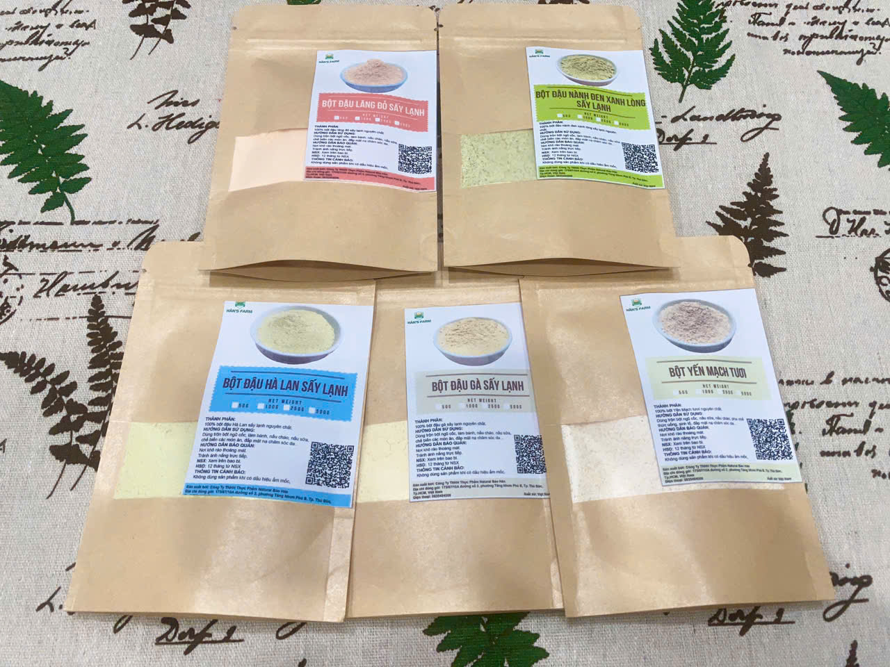 Mua tại TiktokCombo sản phẩm gồm 5 loại bột sấy lạnh là bột đậu gà, bột đậu lăng đỏ, bột đậu hà lan, bột đậu nành đen xanh lòng sấy lạnh, bột yến mạch tươi nguyên chất siêu mịn, không biến đổi gen Tại sao bạn nên chọn bột sấy lạnh nhà Hân's Farm?