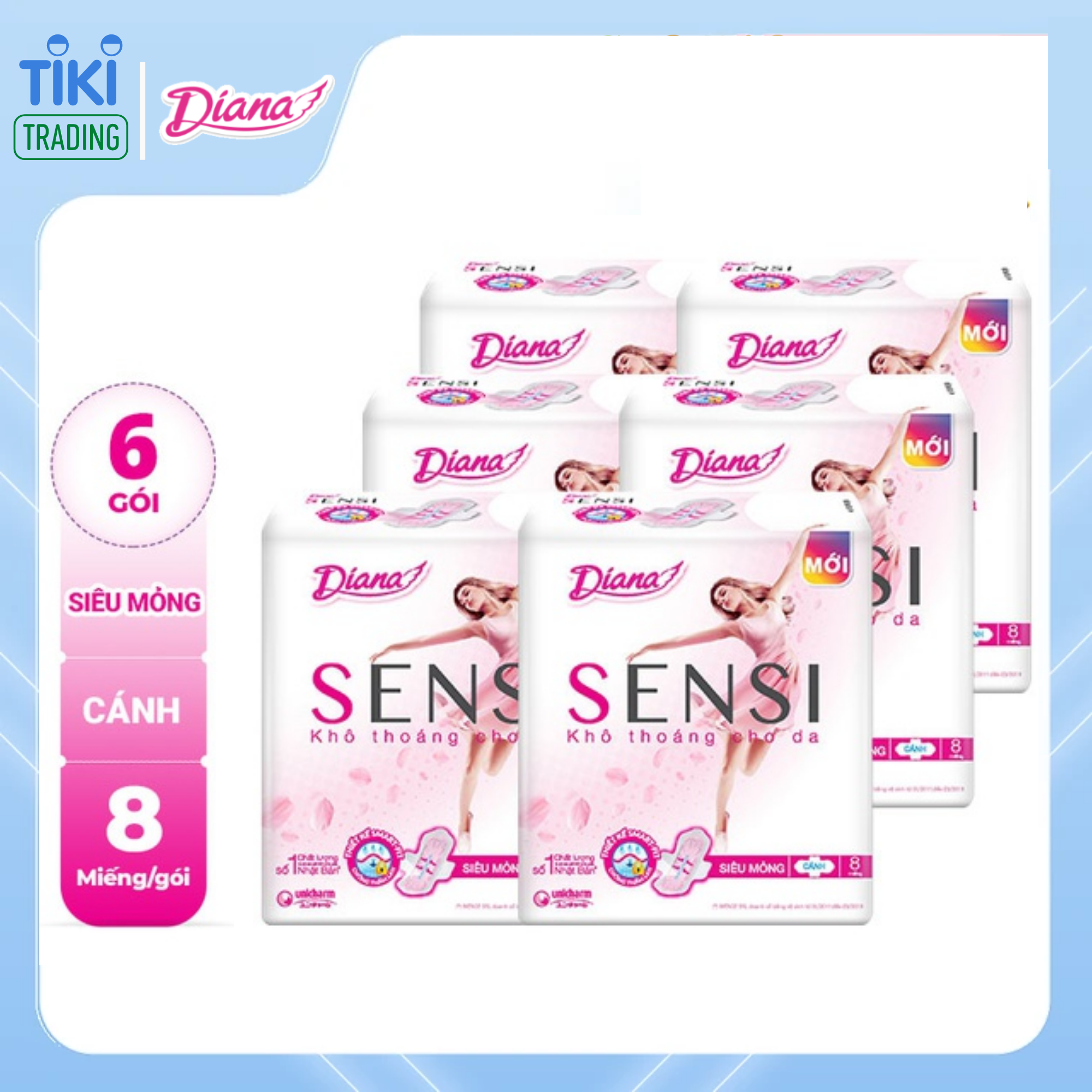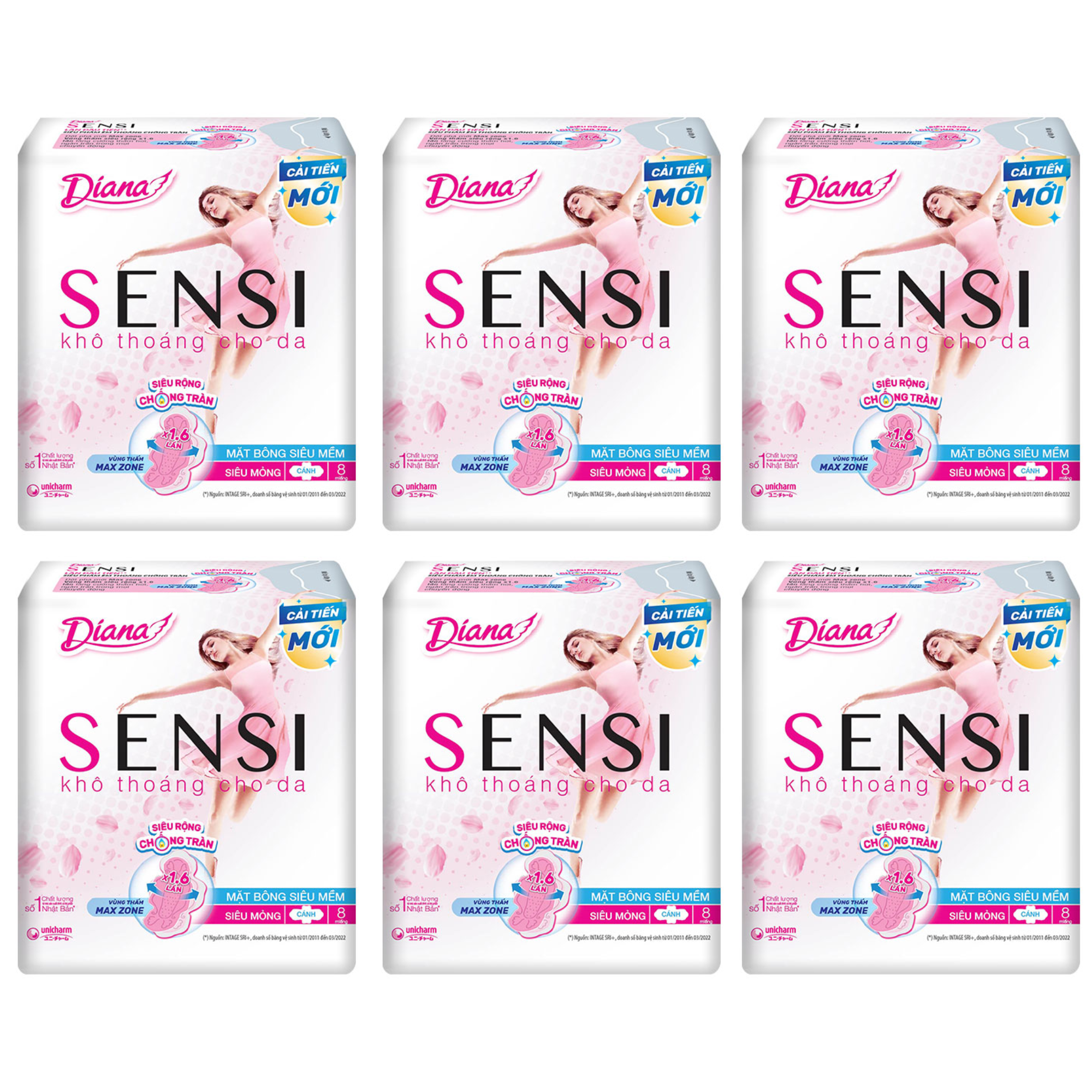 - Combo 6 Băng Vệ Sinh Diana Sensi Siêu Mỏng Cánh (Gói 8 Miếng) là dòng băng vệ sinh dùng hàng ngày của thương hiệu Diana giúp bảo vệ tối ưu cho phái đẹp, ngăn