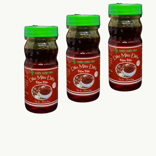 Dầu màu điều là một loại màu thực phẩm dùng để tạo màu đỏ tự nhiên cho món ăn. Dầu màu điều có màu vàng đỏ óng ả giúp món ăn của chúng ta thêm phần đẹp mắt