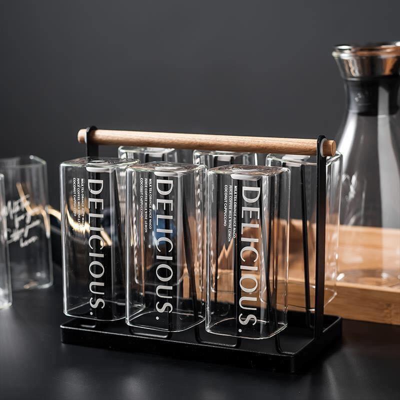 Combo Bộ 6 cốc thủy tinh cao cấp kèm giá úp tròn có khay hứng Combo gồm: 1 bình 6 cốc cốc 1 giá úp hươu 1 khay vương miện