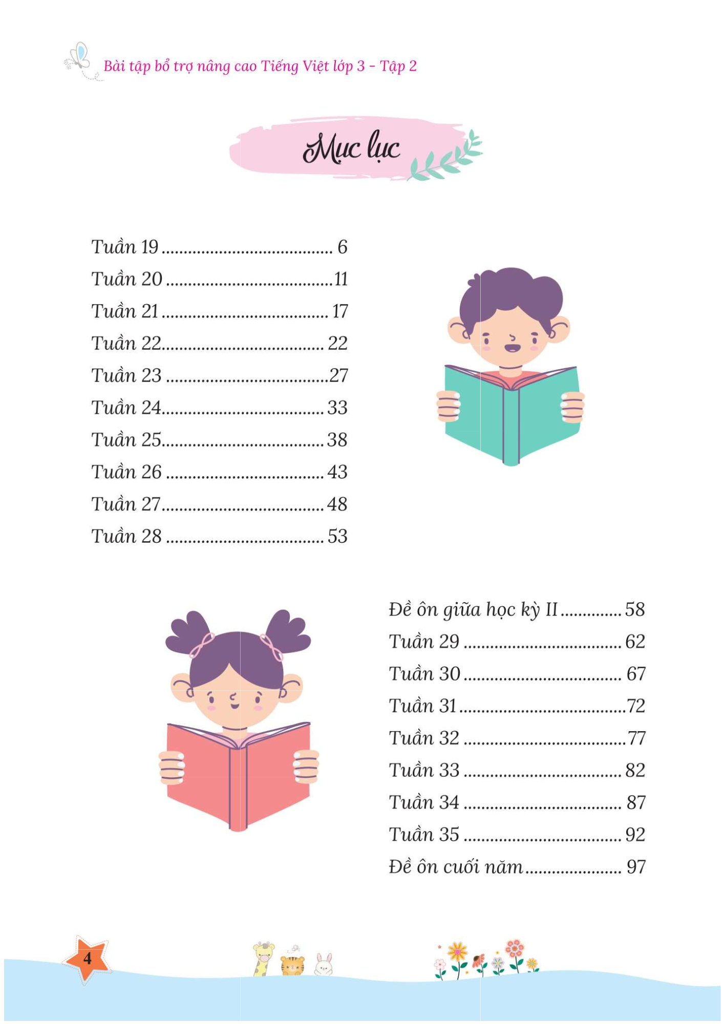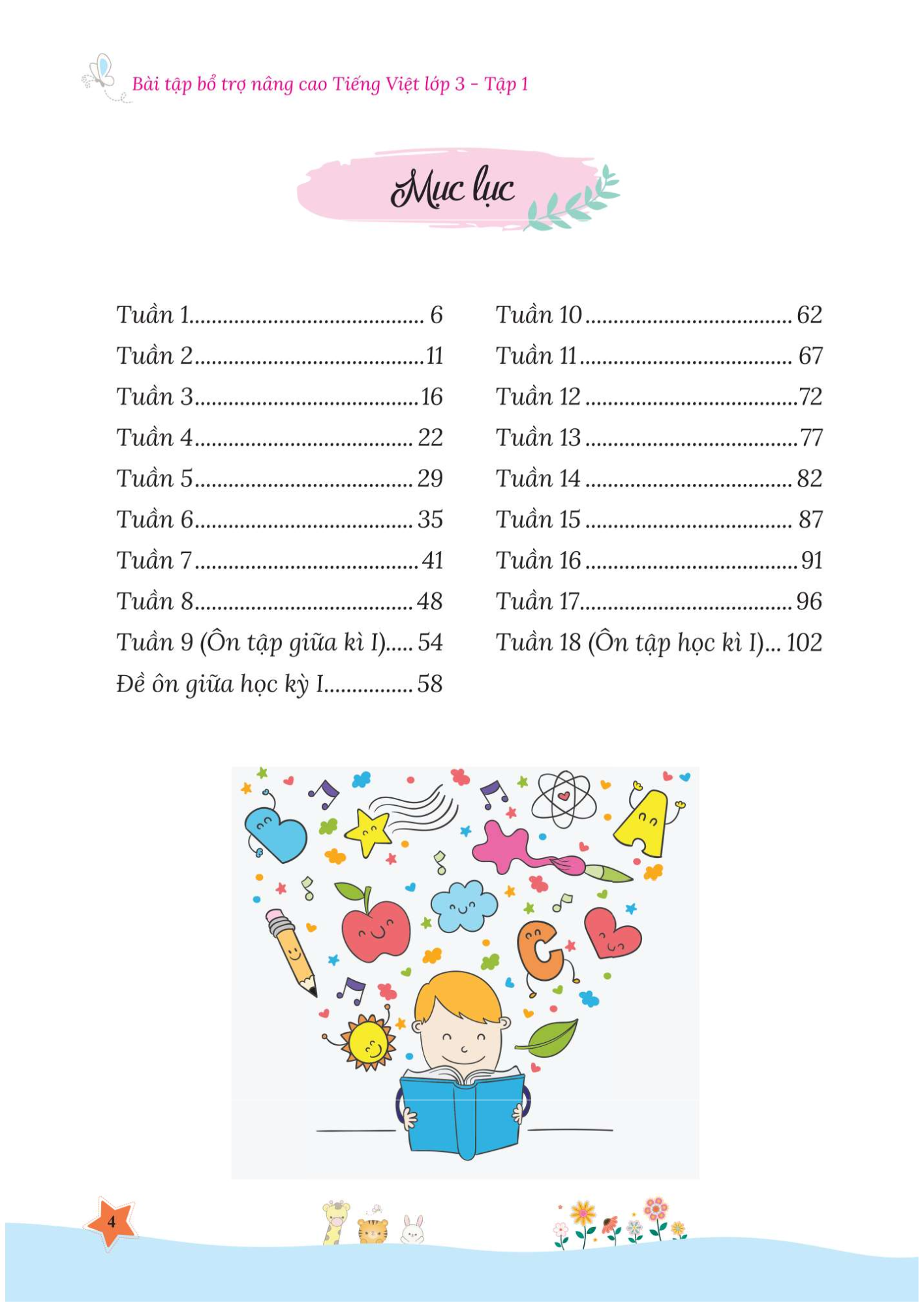 Sau khi học xong kiến thức tuần 9, cuốn sách cung cấp đề ôn tập giữa học kì I, học xong tuần 18 cuốn sách sẽ cung cấp đề ôn tập cuối học kì I. Sau khi học xong kiến thức tuần 28, cuốn sách cung cấp đề ôn tập giữa học kì II, học xong tuần 35 cuốn sách sẽ cung cấp đề ôn tập cuối năm.