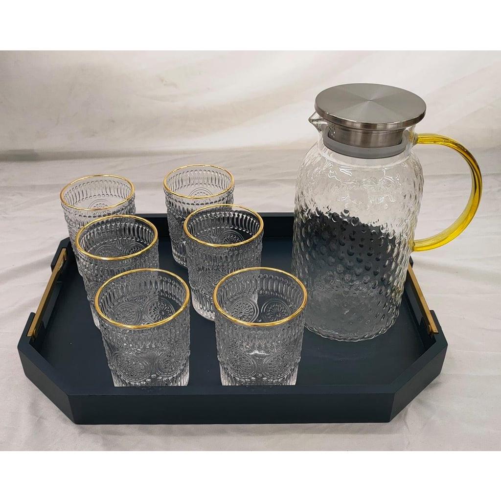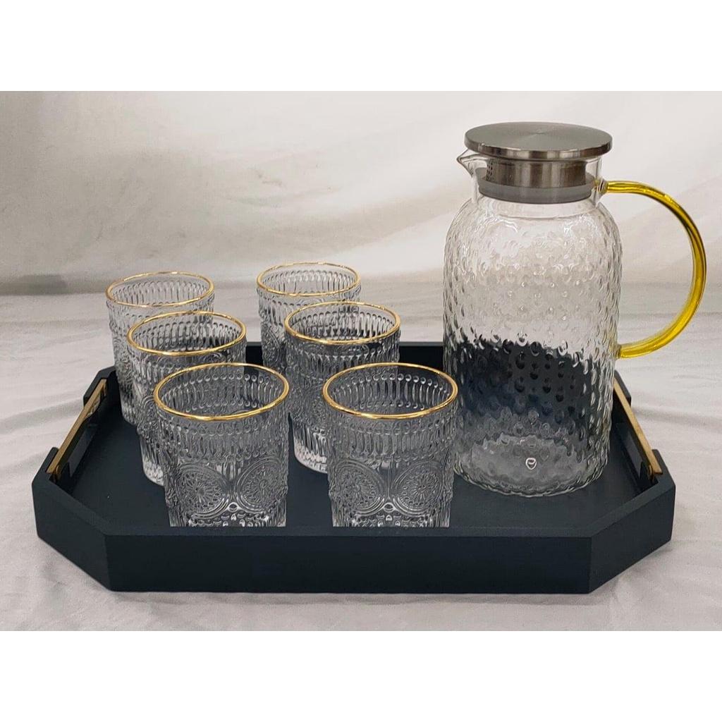 Bộ khay bình nước 6 cốc thuỷ tinh cao cấp