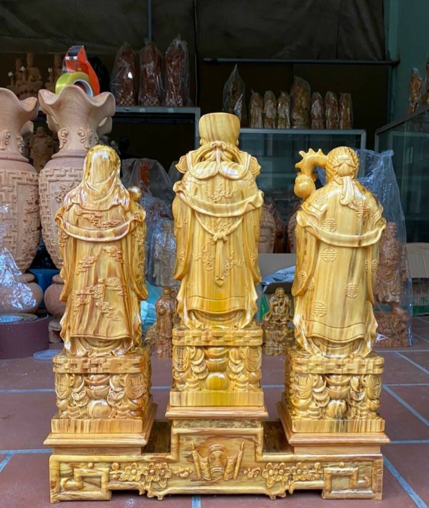 ✨Combo bộ tượng phật tam đa phúc lộc thọ kt cao 40cm+thêm cả kệ chân đế bằng gỗ huyết long đẹp long lanh