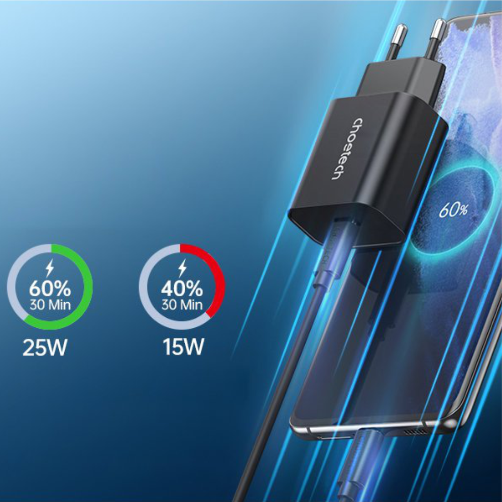 ✨Combo Củ Sạc Nhanh PPS PD 25W CHOETECH PD6003 Và Cáp Type C 60W Dài 1.2m XCC-1003 Cho Điện Thoại Samsung, Oppo, Vivo, Xiaomi - Hàng Chính Hãng