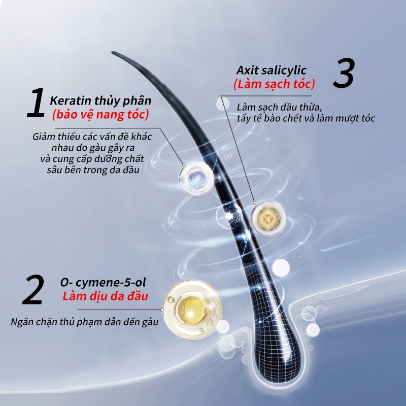 - Làm sạch da đầu: Loại bỏ dầu thừa và hạn chế các nguyên nhân gây gàu.