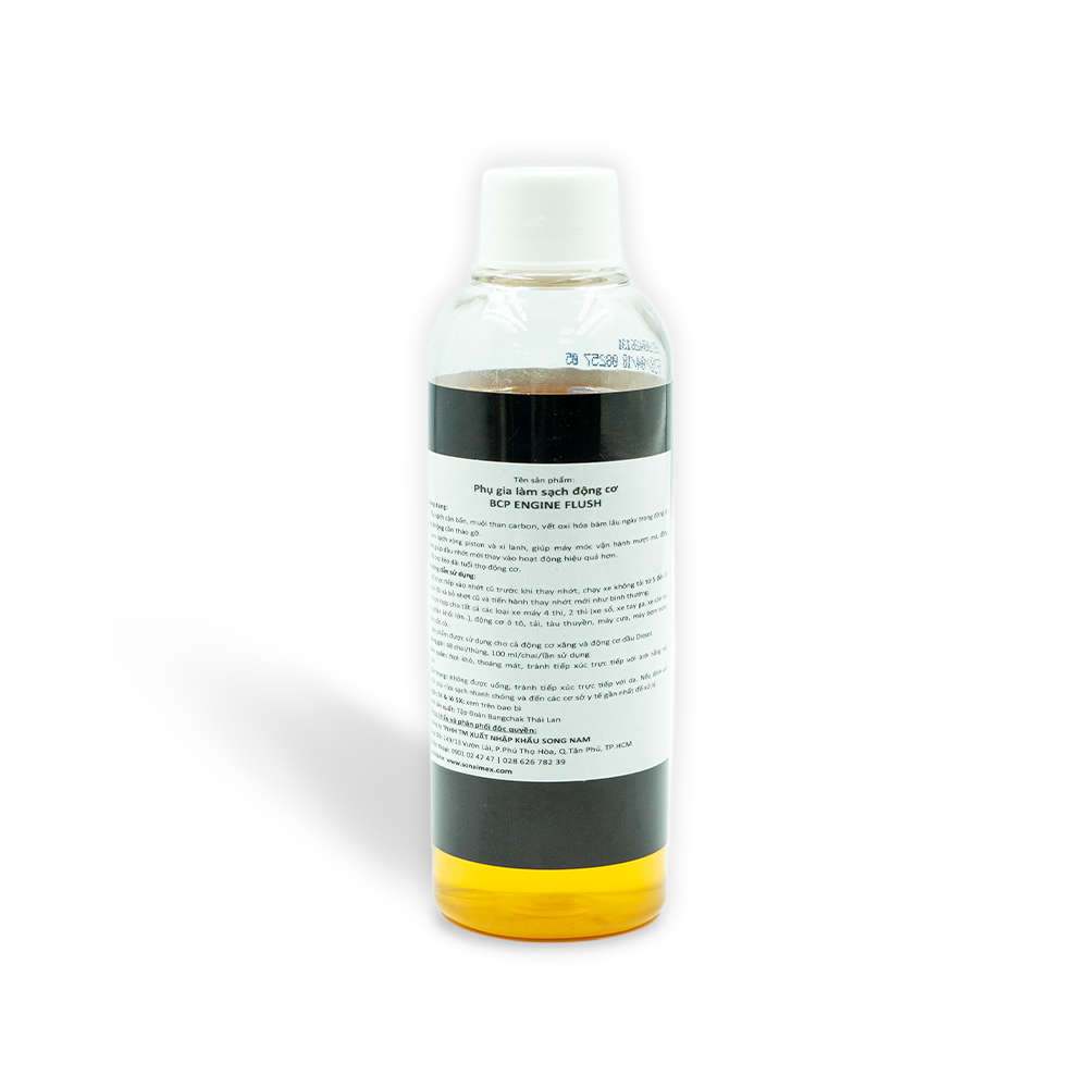 - Không chồng chất quá 6 Thùng lên nhau nhằm tránh biến dạng những chai ở lớp dưới cùng TẠI SAO PHẢI SÚC RỬA ĐỘNG CƠ THƯỜNG XUYÊN ? Như bạn đã biết, sau một thời gian dài sử dụng, những muội than carbon sản sinh trong quá trình đốt cháy không hoàn toàn của động cơ sẽ tích tụ và bám lại vào xupap, đầu piston, thành xi lanh hay bugi. Ngoài ra, nếu bạn đang sử dụng công nghệ động cơ cũ, chất lượng nhiêu liệu không tốt và vận hành xe không đúng cách cũng khiến cho lượng muội than này tăng nhanh. Cho dù hiện nay, nhiều hãng đã cho ra mới những công nghệ mới tối ưu hơn, hạn chế việc hình thành muội than nhưng với điều kiện nhiên liệu chưa thật sự được đảm bảo tại Việt Nam hiện nay thì chắc chắn bạn cũng phải chú ý hơn tới việc làm sạch động cơ. Khi lớp muội than này dày lên, nó có thể làm xước thành xi lanh, ảnh hưởng tới tỉ số nén động cơ khiến máy chạy ì, ồn, giật cục và tốn nhiều nhiên liệu hơn. Do đó, bạn cần phải súc động cơ để tẩy sạch lớp cặn bẩn này, tránh gây hại đến xe. LÀM THẾ NÀO ĐỂ LOẠI BỎ MUỘI CARBON ? Xe máy gần như phương tiện đi lại chủ yếu của mọi người dân Việt Nam. Mặc dù vậy, có rất ít người quan tâm đến việc làm sao để xe luôn bền, vận hành êm ái như lúc mới mua. Một số người cho rằng, chỉ cần đổ xăng tốt, thay nhớt cao cấp, đắt tiền là được. Điều này đúng nhưng chưa đủ. Lớp muội than bám lâu ngày trong động cơ nếu không được làm sạch sẽ ảnh hưởng đến chất lượng xe rất nhiều. Để loại bỏ lớp cặn bẩn này, bạn không nhất thiết phải đem xe ra hãng hay tiệm rửa xe, có một cách vừa tiết kiệm thời gian và chi phí của bạn hơn rất nhiều. Phụ gia vệ sinh động cơ Engine Flush chính là sự lựa chọn tối nhất, mang lại hiệu quả tối ưu cho xe của bạn. VỀ BCP LUBRICANTS BCP Lubricants là thương hiệu dầu nhớt hàng đầu của Thái Lan do Tập Đoàn Bangchak Petroleum Thái Lan sản xuất và phân phối toàn cầu. Tại Việt Nam, dầu nhớt BCP được các garage xe tải, xe ô tô và các tiệm sửa xe máy tin tưởng lựa chọn cho khách hàng vì chất lượng cao và giá cả rất cạnh tranh. Tập Đoàn Năng Lượng Bangchak là nhà sản xuất năng lượng nổi tiếng của Thái Lan với hơn 50 năm kinh nghiệm trong ngành tinh chế dầu mỏ. Bangchak là một trong hai nhà sản xuất dầu nhờn lớn hàng đầu của Thái với công suất 120,000 thùng mỗi ngày.
