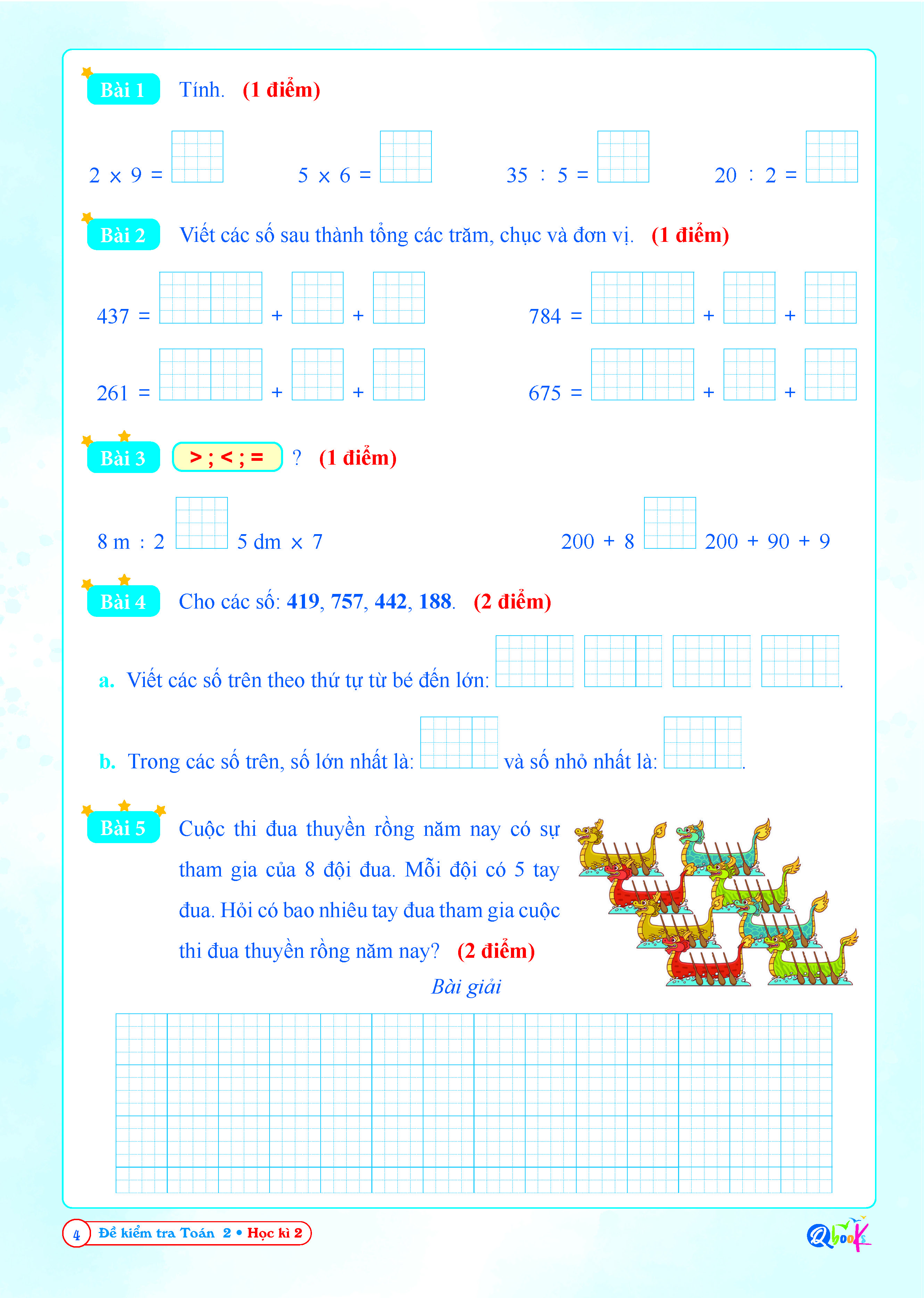Đề Kiểm Tra Toán, Tiếng Việt Lớp 2 - Kết Nối Tri Thức Giải pháp hoàn hảo cho con tự học ở nhà với lộ trình học, ôn bài, luyện tập và kiểm tra tại nhà rất bài bản và khoa học. Con sẽ nắm chắc kiến thức, thành thạo mọi dạng bài tập để đạt điểm số cao. (Combo gồm 4 quyển Toán và Tiếng Việt, mỗi môn gồm 2 quyển ứng với 2 kỳ học. Bám sát theo chương trình "Kết nối tri thức với cuộc sống") ĐẶC ĐIỂM NỔI BẬT: