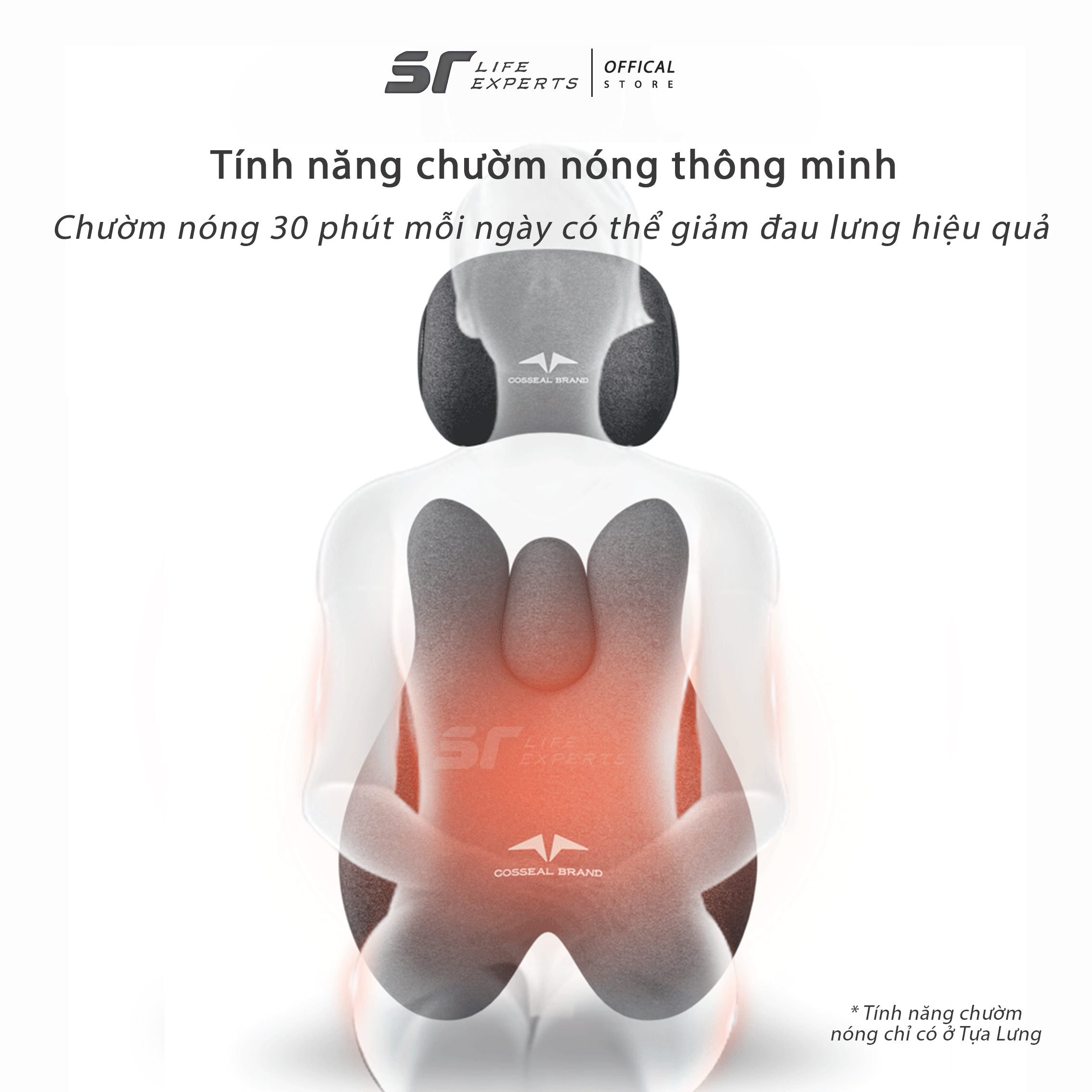 - Tính Năng : Massage mô phỏng tay người, giảm đau mỏi sâu vùng sau gáy và thắt lưng. + Tựa đầu: massage + Tựa lưng: massage & chườm nóng