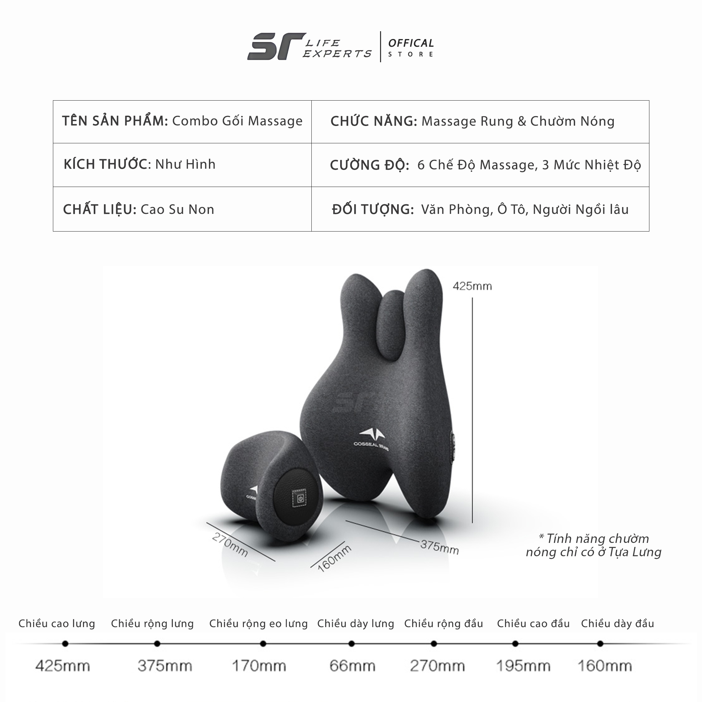 Combo Gối Tựa Đầu Và Tựa Lưng Ô Tô Tích Hợp Massage Chườm Nóng Gối Tựa Cao Su Non, Giảm Đau Mỏi Cổ Vai Và Cột Sống - Sairui Store THÔNG TIN CHI TIẾT: