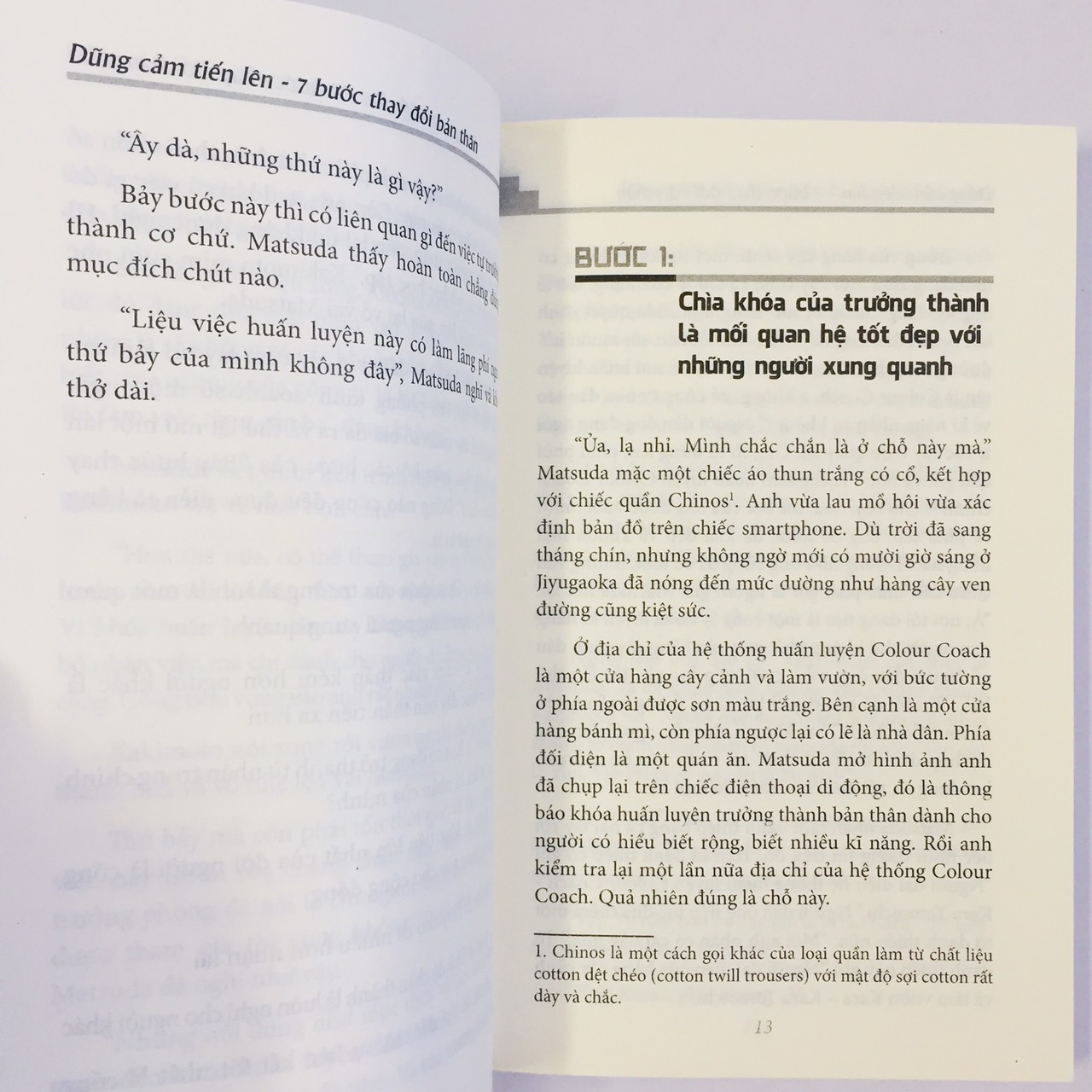 - Chuyện kể về Matsuda Yuji, hiện đang làm việc tại một công ty quảng cáo lớn. Anh gặp gỡ một chuyên gia tư vấn tên là Kara rồi sau đó học được cách trưởng thành, trở thành con người mới bằng cách thực hiện “Bảy bước thay đổi bản thân”, với cơ sở là lí thuyết tâm lý học Adler. Cuốn sách này giới thiệu và giải thích bản chất của lí thuyết tâm lý học Adler thông qua câu chuyện của Matsuda Yuji.