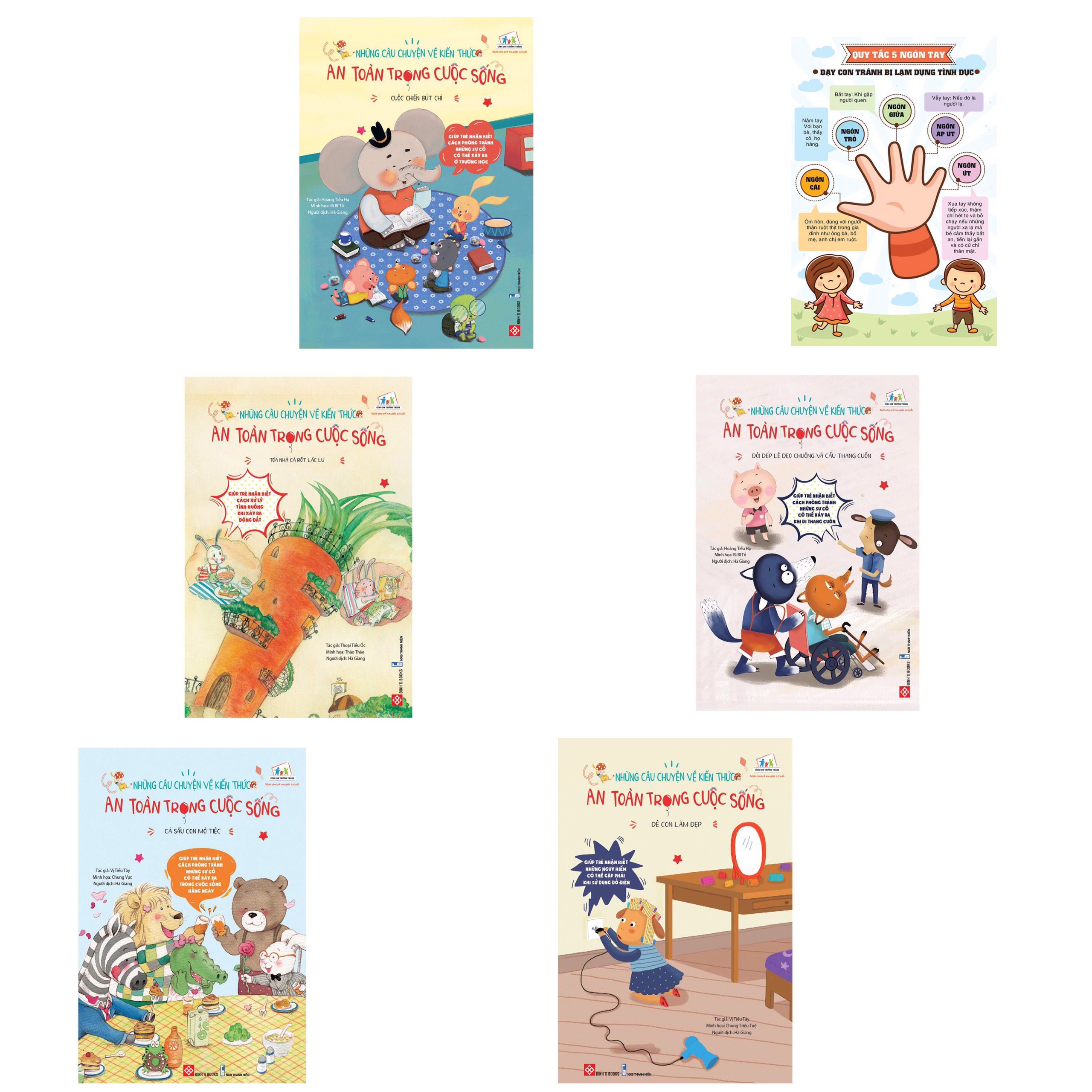 Bộ sách Những câu chuyện về kiến thức an toàn trong cuộc sống sẽ hướng dẫn các em những kỹ năng cơ bản nhất để tự bảo vệ bản thân trước những mối nguy hiểm có thể xảy ra, được viết dưới dạng những câu chuyện vui vẻ, cực kỳ dễ hiểu và được minh họa bằng những hình ảnh vui nhộn, ngộ nghĩnh, màu sắc tươi sáng. Mười câu chuyện về kỹ năng an toàn trong bộ sách gồm có cách xử lý khi bị rò rỉ khí ga, khi trời có sấm sét, khi đi bơi, khi đi lại trên đường phố, khi xảy ra hỏa hoạn, khi đi thang cuốn, khi có động đất, khi ở lớp học, khi ở nhà… rất gần gũi và cực kỳ cần thiết với các em đấy.