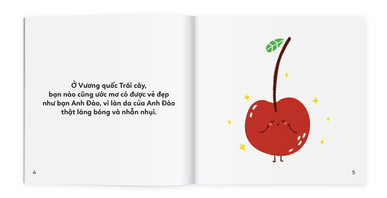 - Bánh trôi trắng trẻo có một hành trình phiêu lưu thú vị: Mỗi khi bơi qua một dòng nước lại biến thành một loại trái cây mang nhiều màu sắc khác nhau. "Trái câu muôn màu" cho bé thấy được sự đa dạng về màu sắc của những loại trái cây quen thuộc.