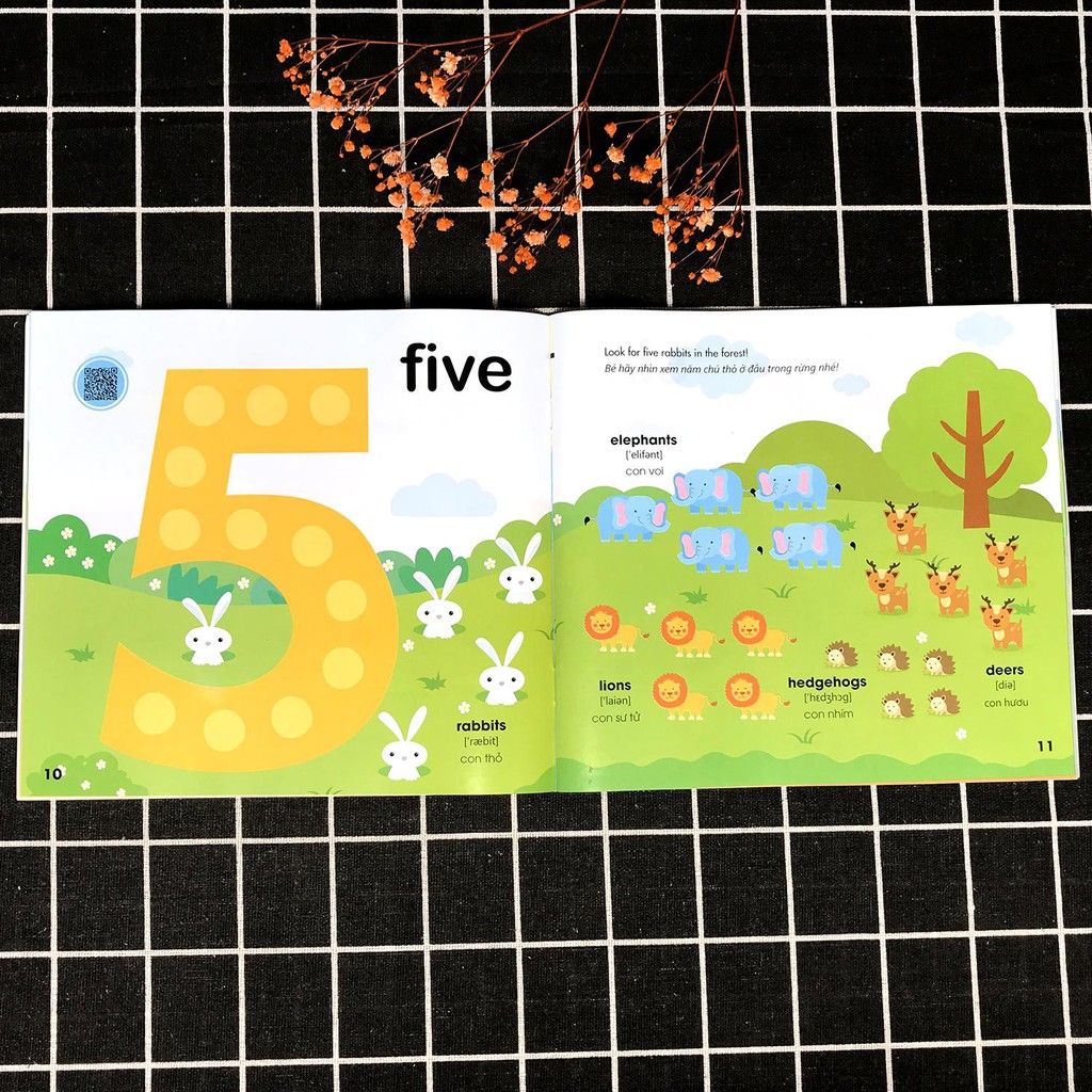 Cuốn sách hoàn hảo cho bé làm quen với Tiếng Anh khởi đầu từ học số đếm tiếng Anh từ 1 đến 20 một cách đơn giản mà hấp dẫn. Bé không chỉ được học 20 số đếm tiếng Anh đầu tiên mà còn được thử tài nhanh tay tinh mắt tìm kiếm những đồ vật, con vật đáng yêu trong bối cảnh tự nhiên, hình ảnh sinh động như đang khám phá một chuyến phiêu lưu kì ảo