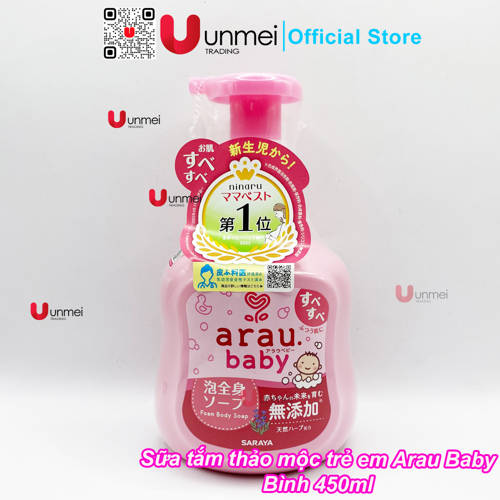 - Sữa tắm Arau Baby của Nhật dành cho bé từ sơ sinh với chiết xuất 100% từ thảo mộc tự nhiên mang lại cho bé những giây phút thư giãn khi tắm và bảo vệ làn da mỏng manh của trẻ nhỏ. Giúp bé có một làn da mềm mại và sạch khuẩn.