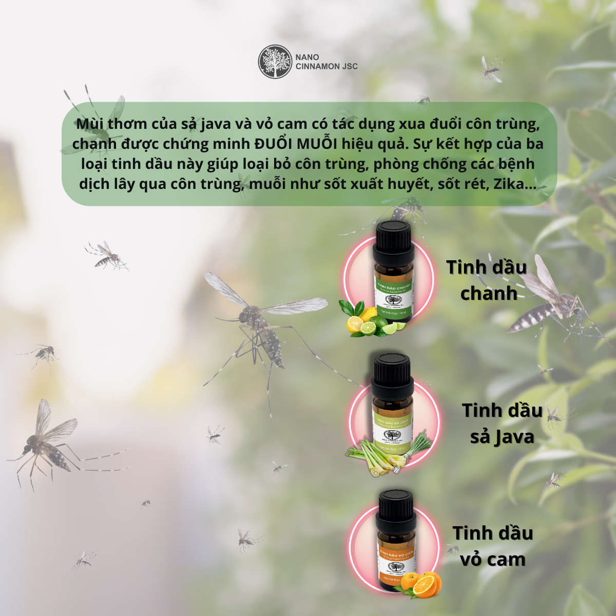 Combo Tinh Dầu Đuổi Côn Trùng, Đuổi Muỗi Nano Cinnamon - Cam, Chanh, Sả, 30ml