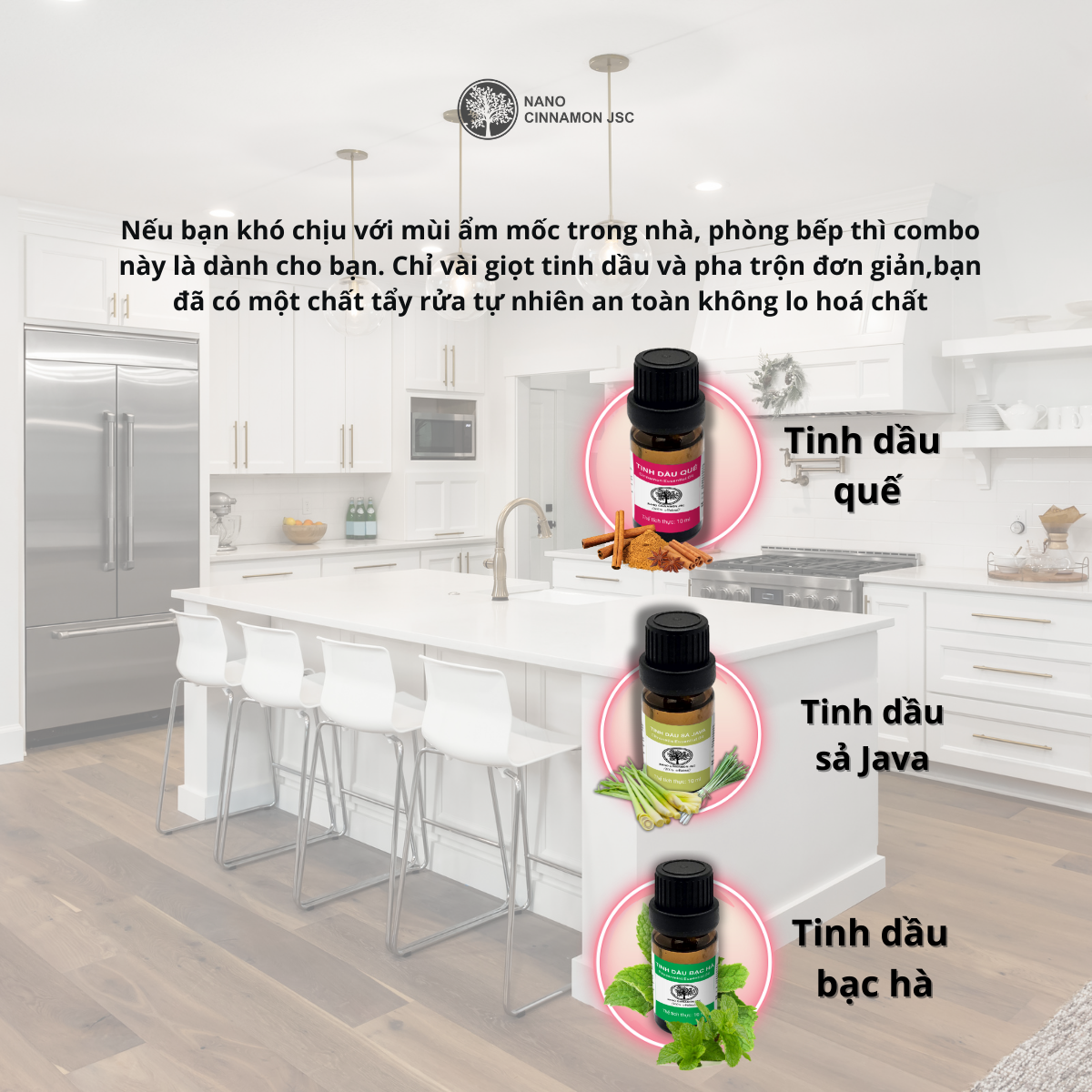 Tinh dầu Quế: Với hương thơm ấm áp và đặc trưng, tinh dầu Quế không chỉ giúp khử mùi mà còn mang lại cảm giác ấm cúng, dễ chịu cho không gian bếp.