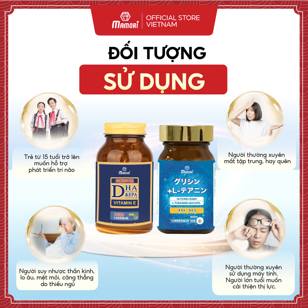 ✨Combo Viên Uống Mamori DHA-EPA và Glycine L-theanine Giúp Tăng Cường Trí Nhớ, Cải Thiện Giấc Ngủ sâu, thư giãn