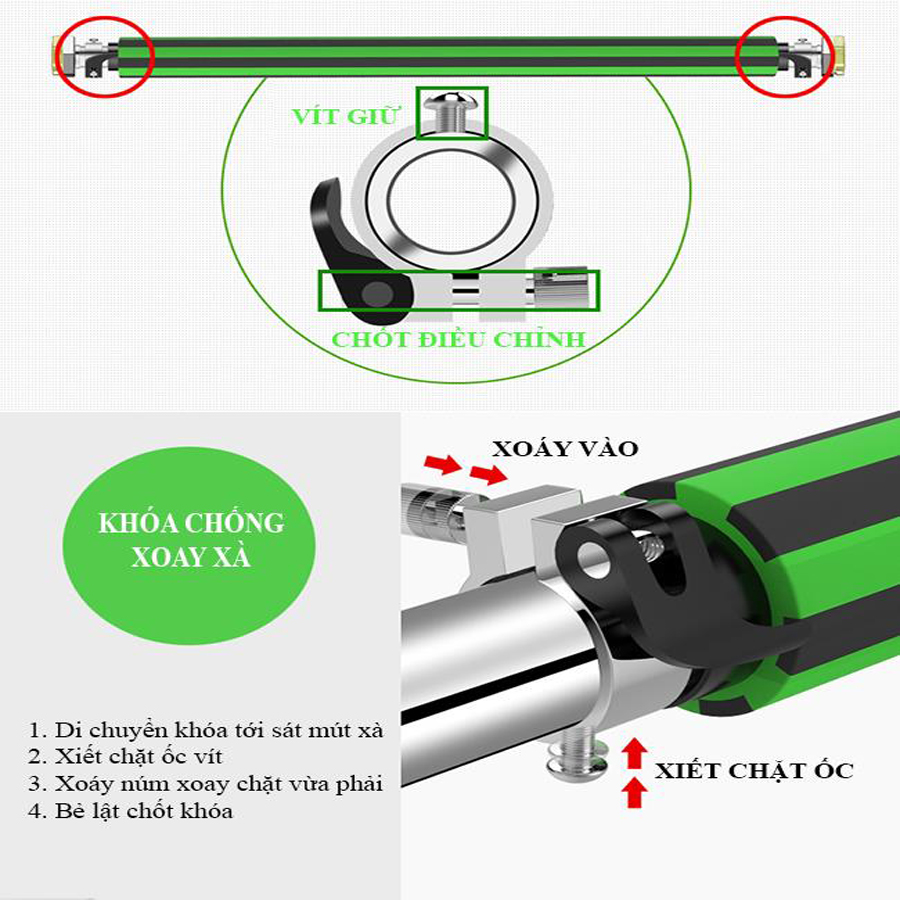 Mô Tả Sản Phẩm: Xà đơn gắn cửa cải tiến có chốt chống xoay (60cm-100cm)(82cm-130cm)(116cm-150cm) (Khách lựa chọn kích thước) Xà đơn có chốt chống xoay: Chiều dài : 62-100cm 82-130cm và 100-150cm Mẫu 62-100cm