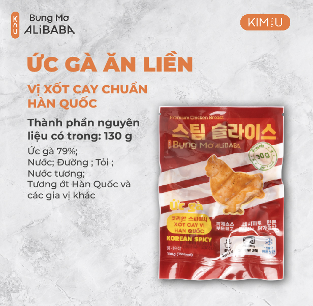 Chỉ cần 2 phút mở gói và hâm nóng ức gà đã được cắt lát và nêm nếm sẵn là bạn đã thưởng thức bữa ăn lành ngon, tiện lợi. Thịt gà vẫn tươi nhờ giữ được độ mềm thơm đậm vị trong từng thớ thịt vẹn nguyên dưỡng chất.
