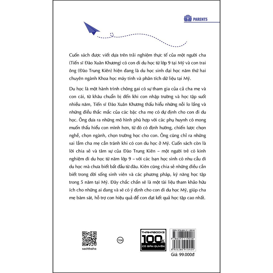 • Du học là hành trình chông gai có sự tham gia của cả cha mẹ và con cái, từ khâu chuẩn bị đến khi con nhập trường và học tập suốt nhiều năm. Tiến sĩ Đào Xuân Khương thấu hiểu những nỗi lo lắng và những điều thắc mắc của các bậc cha mẹ có dự định cho con đi du học. Ông đưa ra những mô hình phù hợp với phụ huynh có mong muốn thấu hiểu con mình hơn, từ đó có định hướng, chiến lược chọn ngành, chọn nghề, chọn trường học cho con. Ông cũng chỉ ra những sai lầm cha mẹ cần tránh khi có con du học ở Mỹ.
