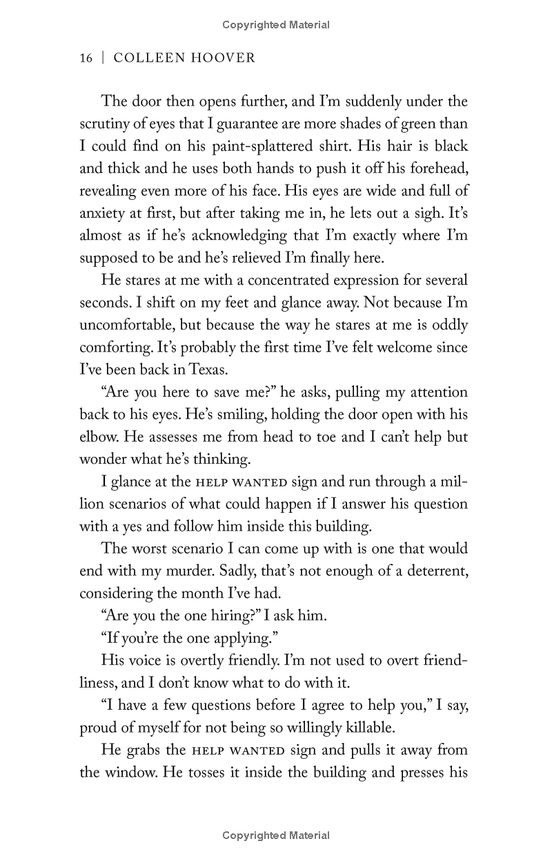 At age twenty-one, Auburn Reed has already lost everything important to her. In her fight to rebuild her shattered life, she has her goals in sight and there is no room for mistakes. But when she walks into a Dallas art studio in search of a job, she doesn't expect to find a deep attraction to the enigmatic artist who works there, Owen Gentry.