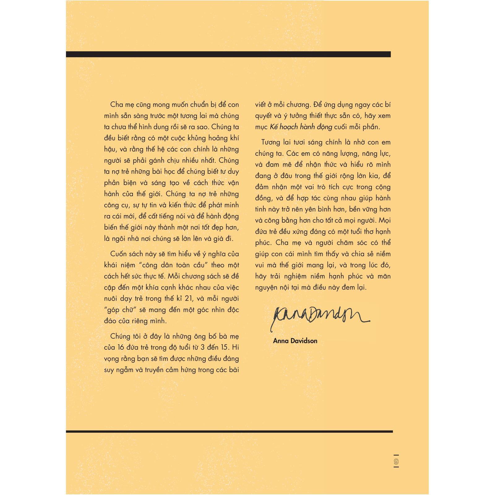 Được truyền cảm hứng từ câu chuyện của các tác giả - vừa là những chuyên gia, nhà hoạt động năng nổ, vừa là các phụ huynh nhiệt huyết luôn hết mình trong việc nuôi dạy nên những công dân toàn cầu tương lai