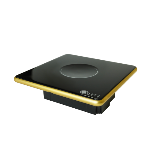 - Công tắc cảm ứng kính lõm viền vàng Lumi thiết kế sang trọng, tinh tế - chuẩn nhà hiện đại. - Thiết bị được dùng bật tắt các thiết bị điện trong nhà như: