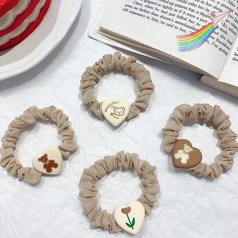 ✨Cột tóc dây vải hình gấu tim màu trà sữa hot trend Hàn Quốc Tatitava