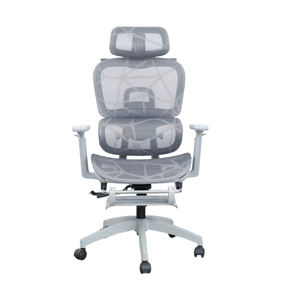 Ghế Ergonomics có gác chân màu xám nhập khẩu - Chất liệu: lưng và mặt ngồi lưới, khung ghế và tay nhựa, khung gác chân thép mạ chrome, tấm gác chân nhựa, chân thép mạ