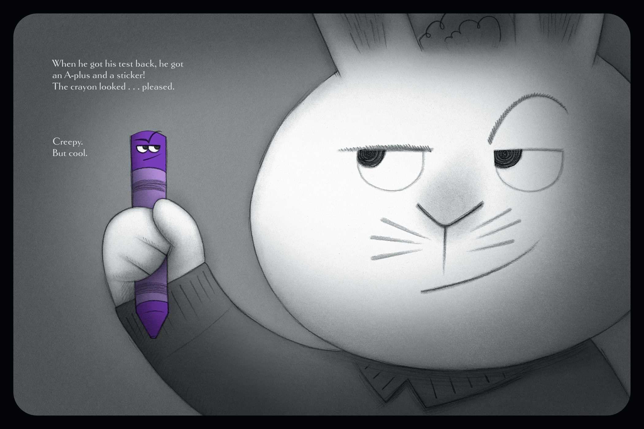 Jasper Rabbit has a problem: he is NOT doing well in school. His spelling tests? Disasters. His math quizzes? Frightening to behold. But one day, he finds a crayon lying in the gutter. Purple. Pointy. Perfect. Somehow…it looked happy to see him. And it wants to help.