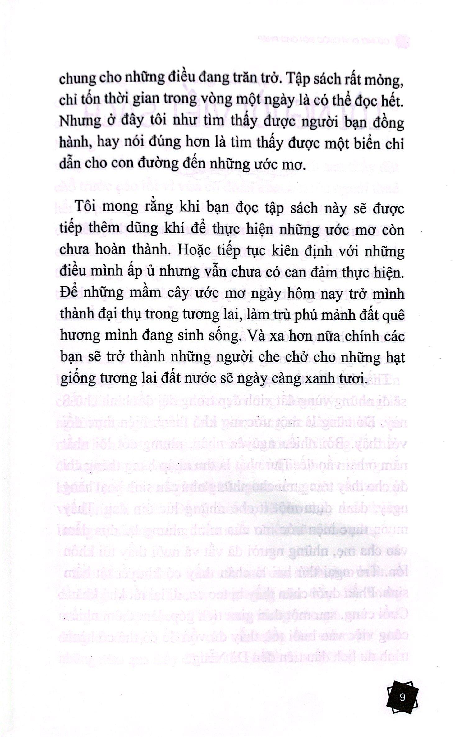 Cứ Mơ Đi Vì Cuộc Đời Cho Phép "Bạn đang cảm thấy bế tắc với cuộc sống hiện tại. Bạn không tìm được niềm yêu thích hãy cái gọi là ước mơ. Bạn đang hoang hoải với những ước mơ của m.ình. Bạn không biết làm thế nào để chạm được tới đích của ước mơ. Đâu đó có người khuyên bạn cứ mơ đi vì cuộc đời cho phép. Bạn nhận ra rằng: “Đúng, m.ình phải có ước mơ, phải thực hiện được ước mơ của m.ình!” Nhưng bằng cách nào đây, bạn không biết phải bắt đầu từ đâu, đi con đường nào?