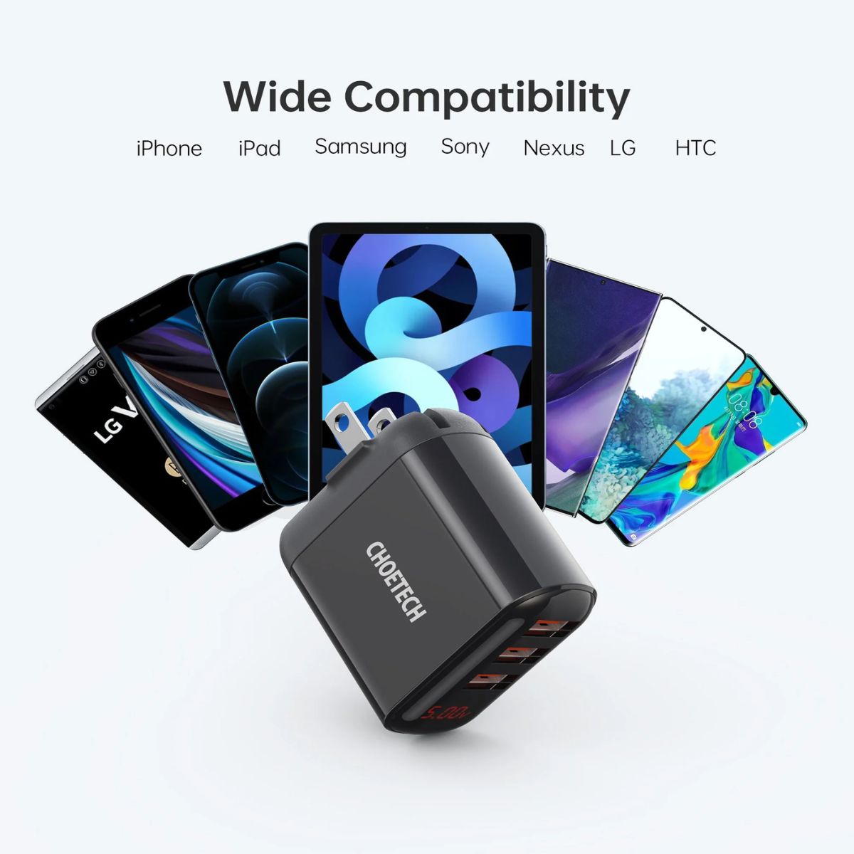 Củ sạc Choetech Q5009 3 cổng USB A có màn hình hiển thị điện áp (Hàng chính hãng)