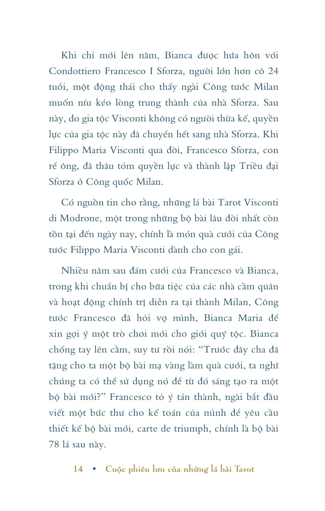 Cuộc phiêu lưu của những lá bài Tarot là một cuộc hành trình xuyên qua thời gian và không gian, đưa bạn đi qua các giai đoạn lịch sử, khám phá nguồn gốc của Tarot, khám phá ý nghĩa biểu tượng và hình ảnh trên từng lá bài, cách mà chúng liên kết với nhau để tạo nên một hệ thống biểu tượng phức tạp và sâu sắc. Không chỉ đơn thuần “học về Tarot”, cuốn sáchcòngiúp bạn khám phá sự kết nối của Tarot với các lĩnh vực khác như tâm lý học, chiêm tinh học, thuật giả kim,… Bạn sẽ thấy sự hiện diện của Tarot ở khắp mọi nơi, trong mọi khía cạnh của trí tuệ nhân loại.