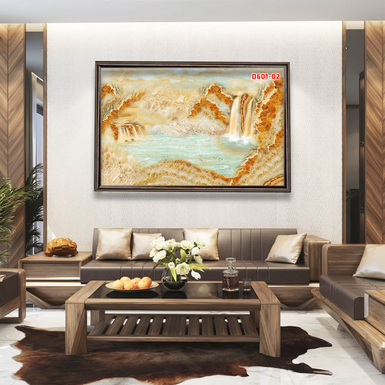 Khung Tranh : Khung tranh được làm từ chất liệu nhựa PVC giả gỗ, họa tiết nổi,màu sắc chân thực, Bản khung tranh-6cm