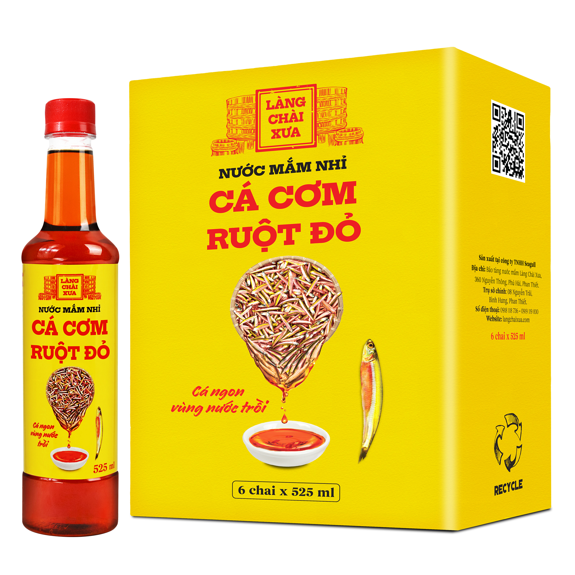 Thùng 6 chai nước mắm nhỉ cá cơm than Làng Chài Xưa 525ml/chai sánh đặc cá 300 năm truyền thống