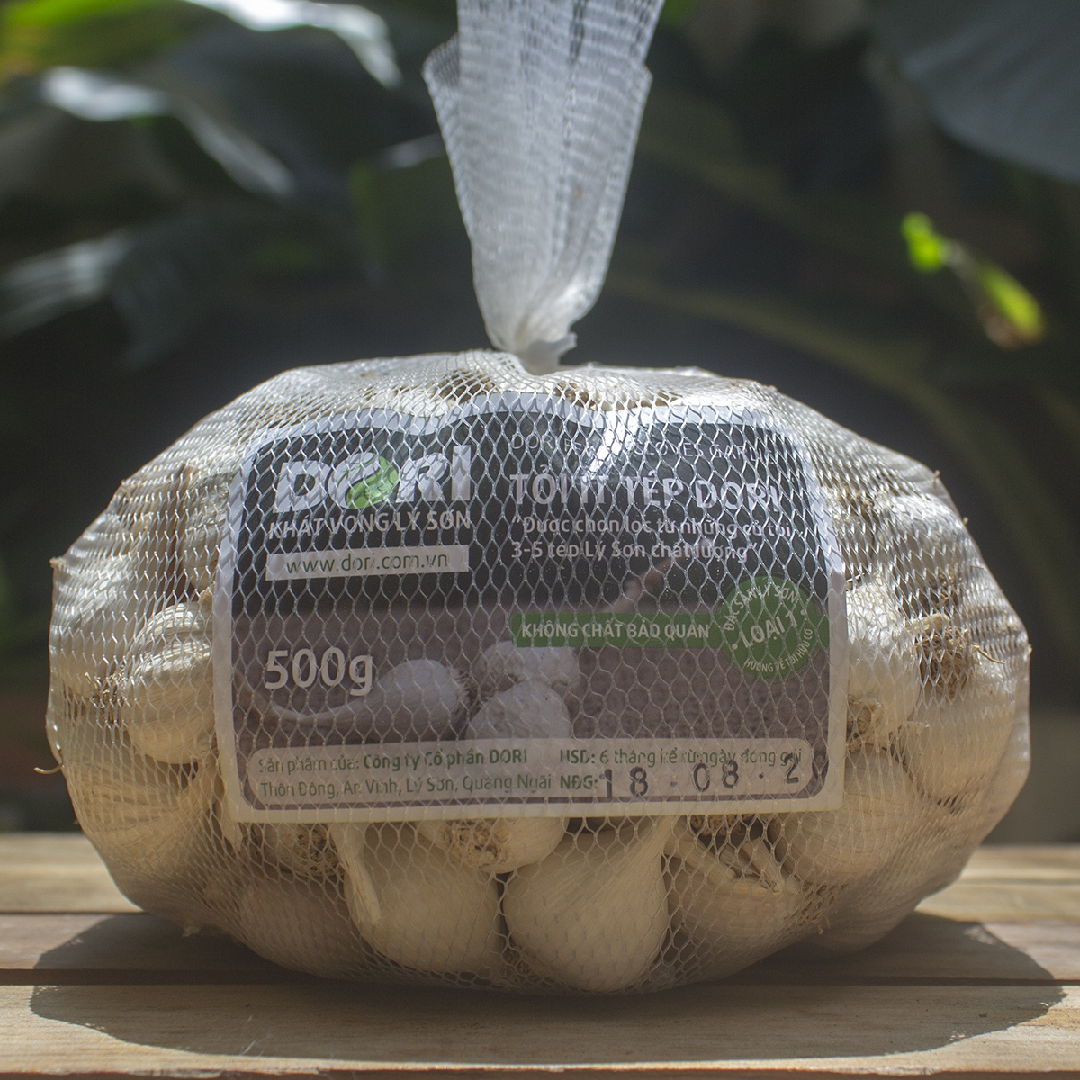 Với sản phẩm tươi sống, trọng lượng thực tế có thể chênh lệch khoảng 10%. - 100% tỏi được trồng tại đảo Lý Sơn, Quảng Ngãi. Dori thu mua trực tiếp từ nông hộ. -