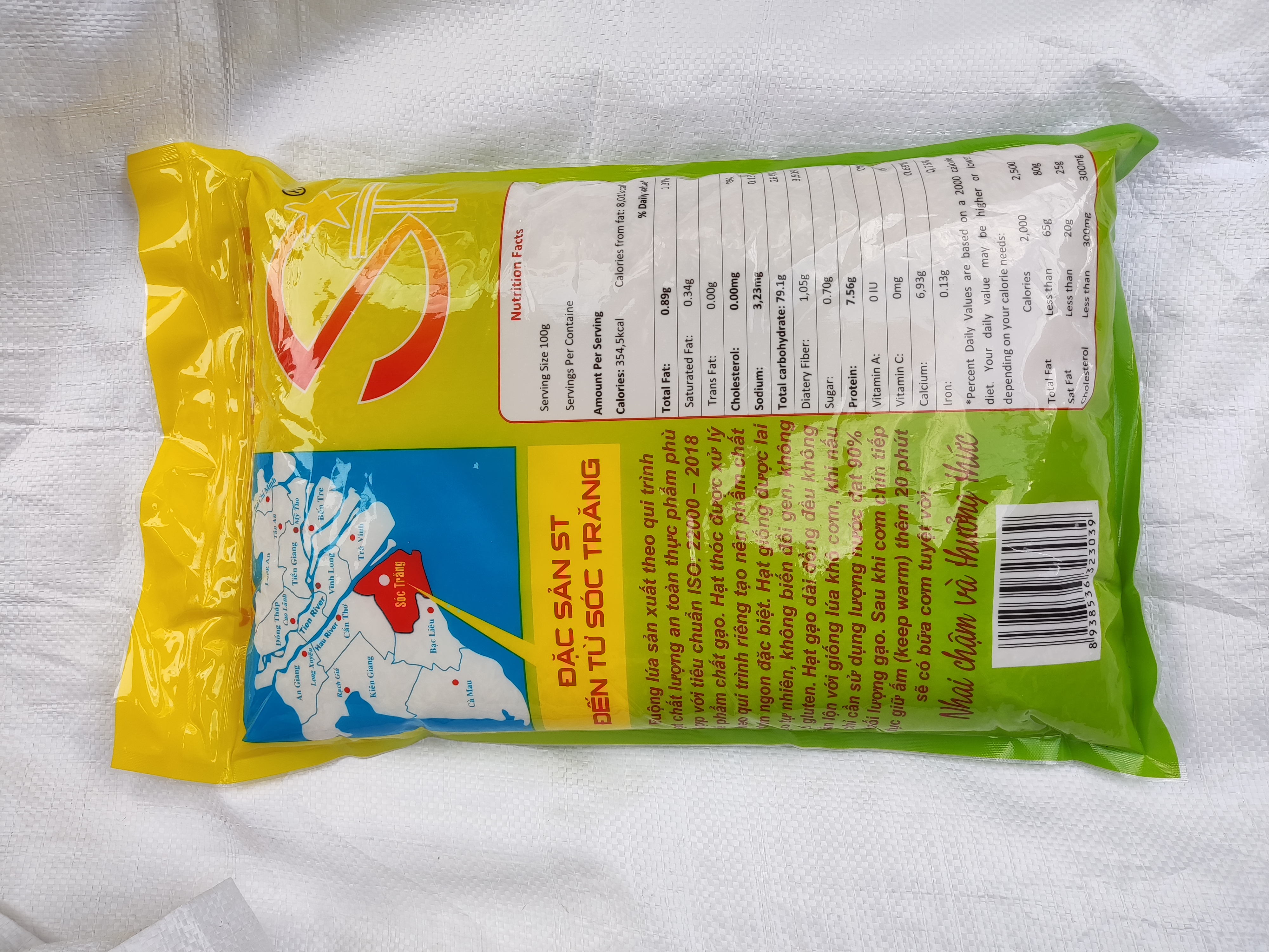 Khối lượng tịnh: 5kg Xuất sứ: Sóc Trăng, Việt Nam Ngày sản xuất: Xem trên bao bì Hạn sử dụng: 6 tháng kể từ ngày sản xuất Đóng gói: Túi 5Kg Thương hiệu: Gạo