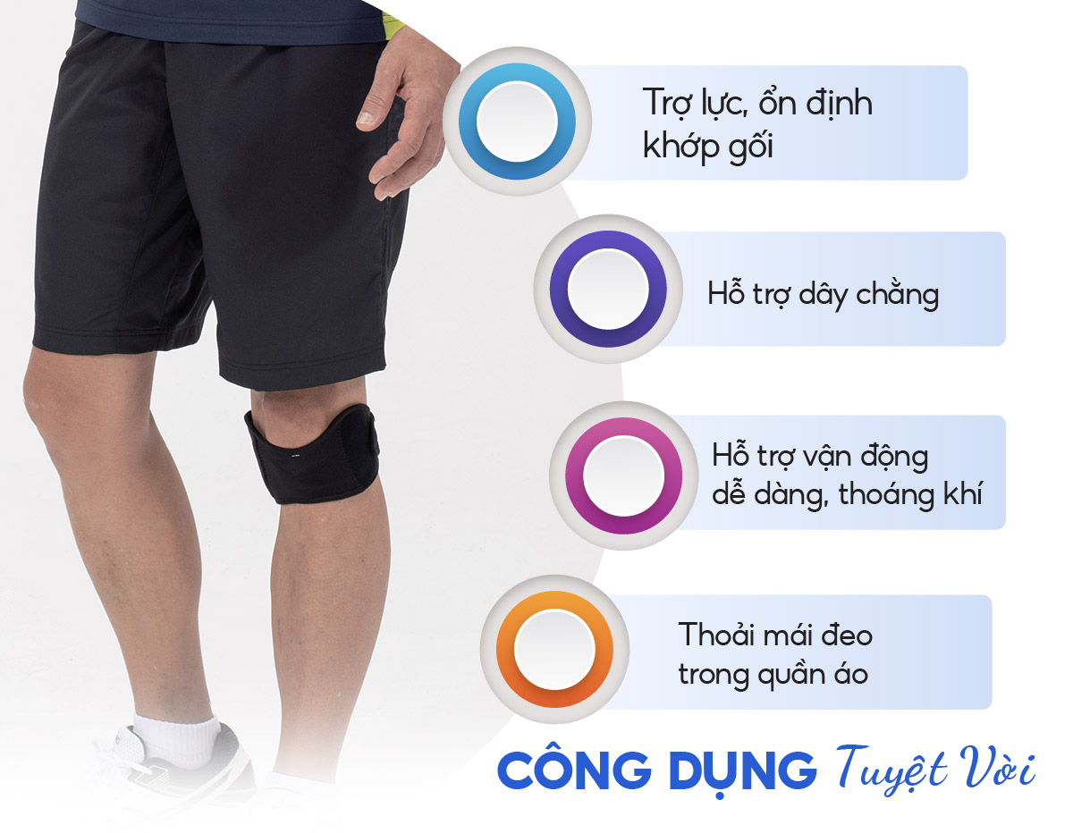 Phòng ngừa và đẩy lừi các chấn thương vùng đầu gối Hàng làm sẵn, chỉ việc đeo vào là sử dụng Tự tin hơn khi chơi thể thao, nâng cao hiệu quả tập Tạo cho